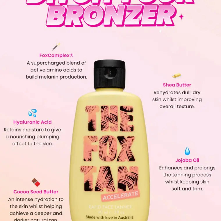 It contains our exclusive ingredient FoxComplex which helps boost melanin, the stuff in your skin that helps you tan.