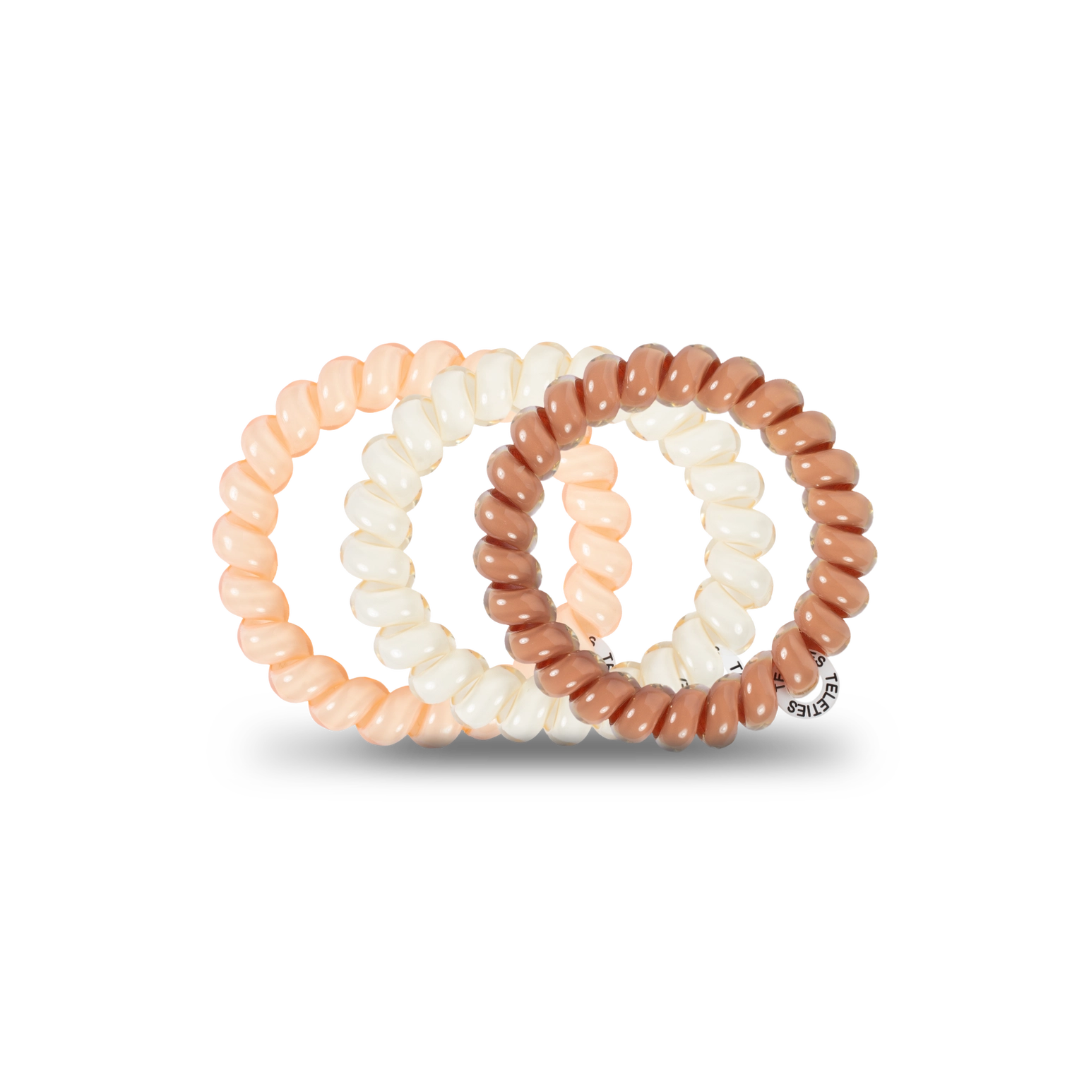 Hold your hair and enhance your style with TELETIES. The strong grip, no rip hair tie that doubles as a bracelet. Strong, pretty and stylish, TELETIES are designed to withstand everyday demands while taking your look to the next level. Sold in packs of three.