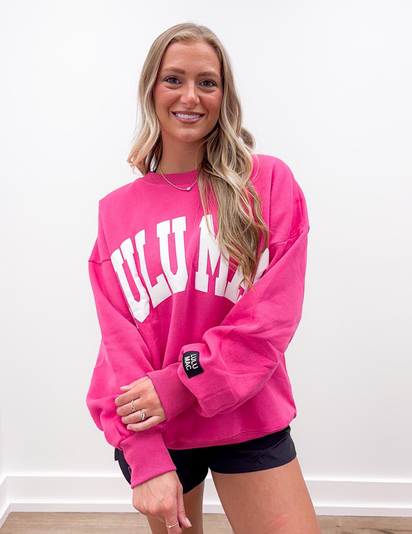 Lulu Mac Logo Sweatshirt in Hot Pink/White