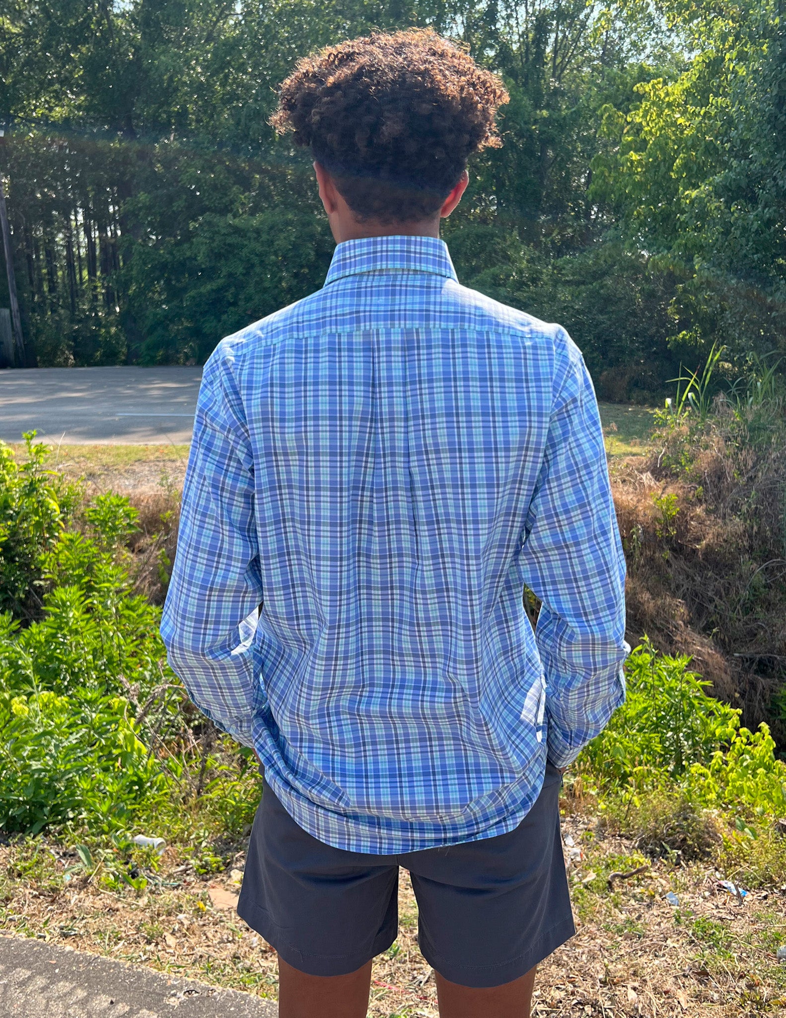 Southern Marsh Hartsville Plaid Dress Shirt French Blue & Mint
