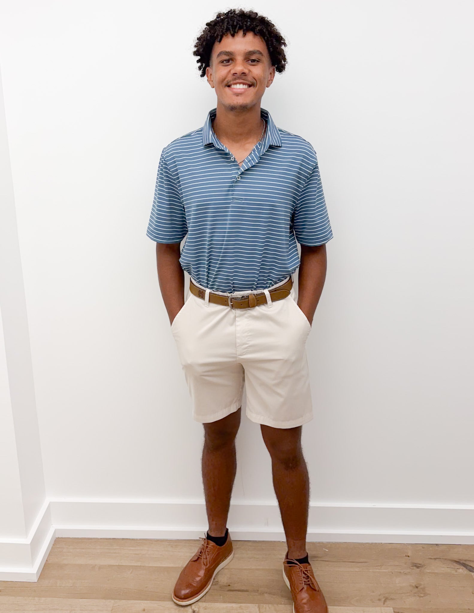 Southern Point Co. Horizon Stripe Performance Polo in Mallard Blue/White