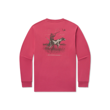 Crafted with the southern sportsman in mind, our long sleeve Pointer Uplander tee features a custom bird hunting dog and man design on the back and our classic mallard logo on the front pocket. This tee is crafted from 100% ultra soft cotton and boasts a printed neck tag for added comfort.