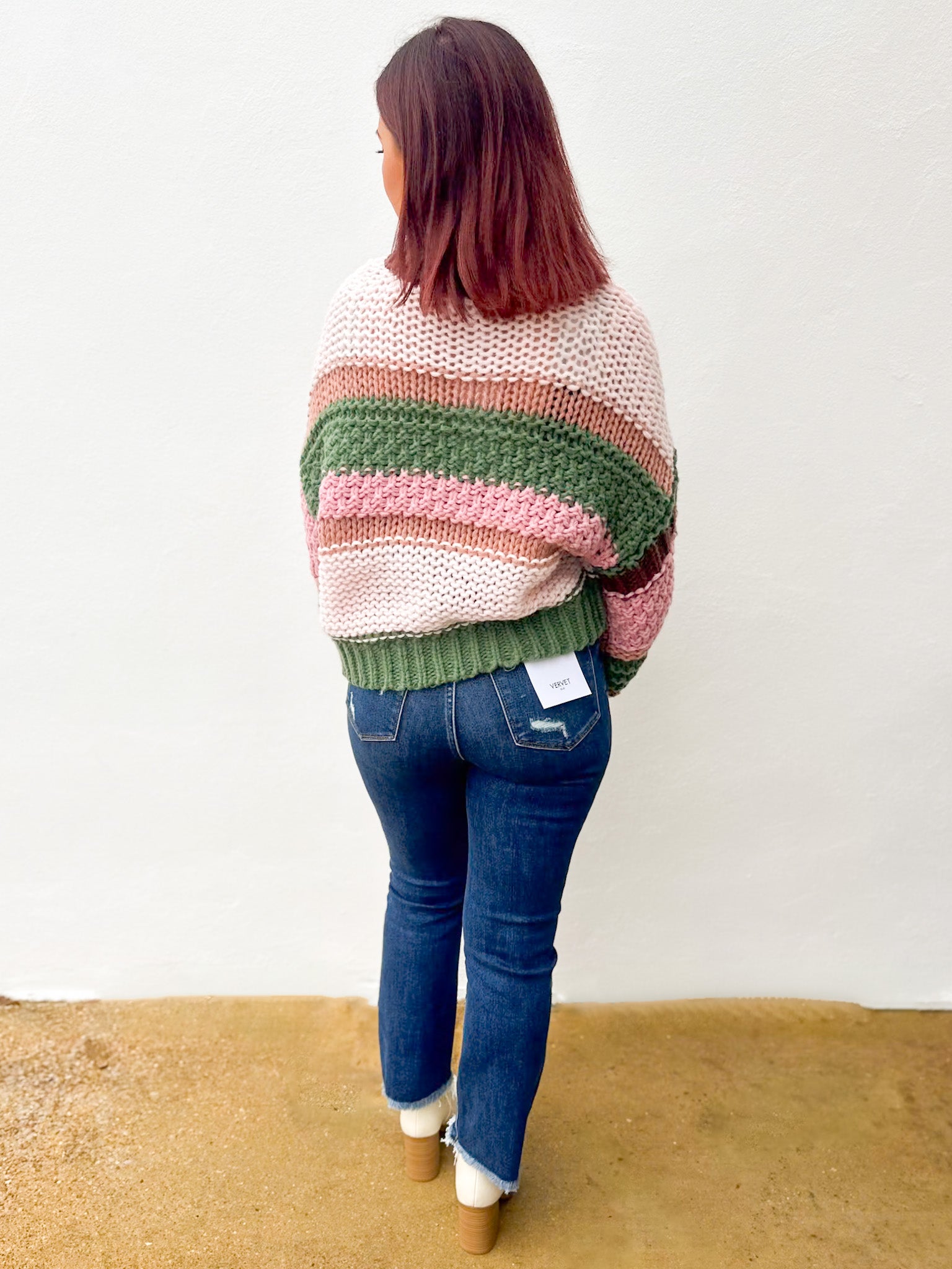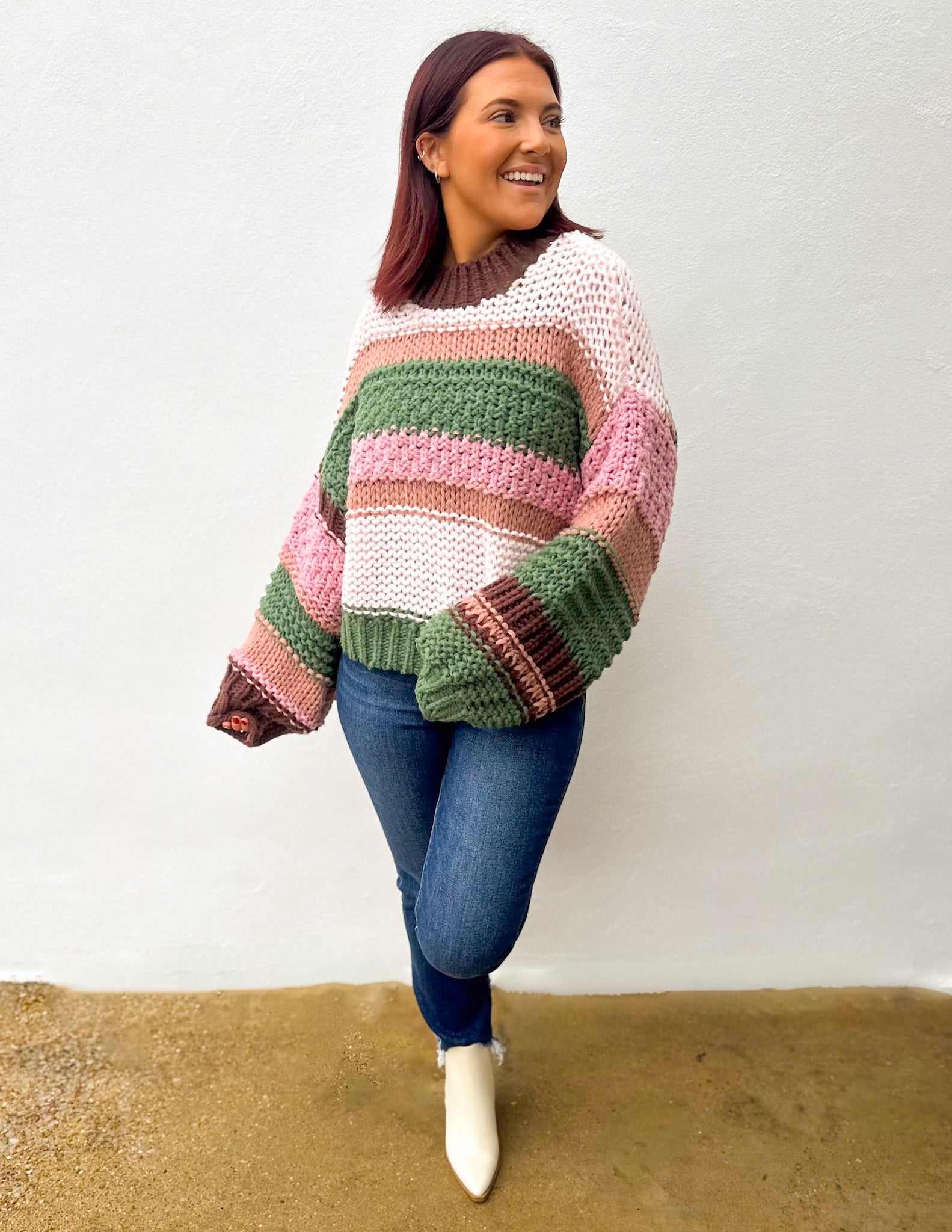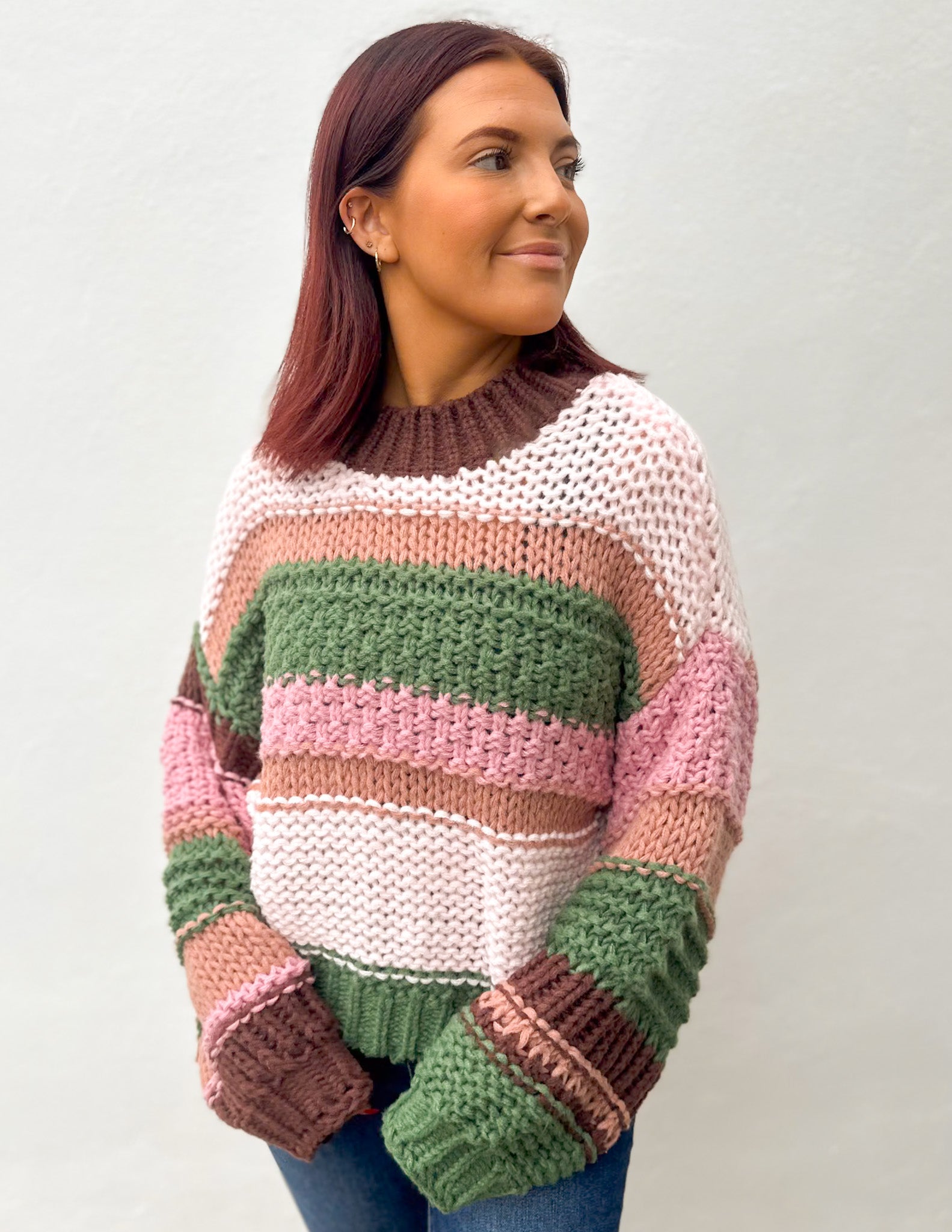 COLOR BLOCK STRIPED CHUNKY SWEATER TOP