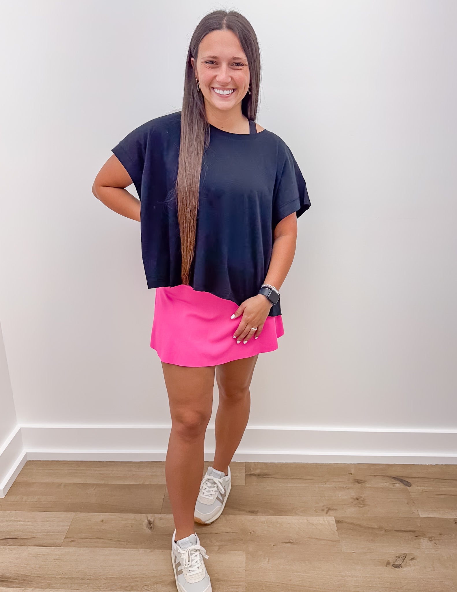 look for any occasion. Features: - Breathable and lightweight cotton slub fabric - Relaxed fit / Oversized - Cropped length - Wide round neckline - Short sleeve tee - Dropped armhole - Open back - Raw edge details
