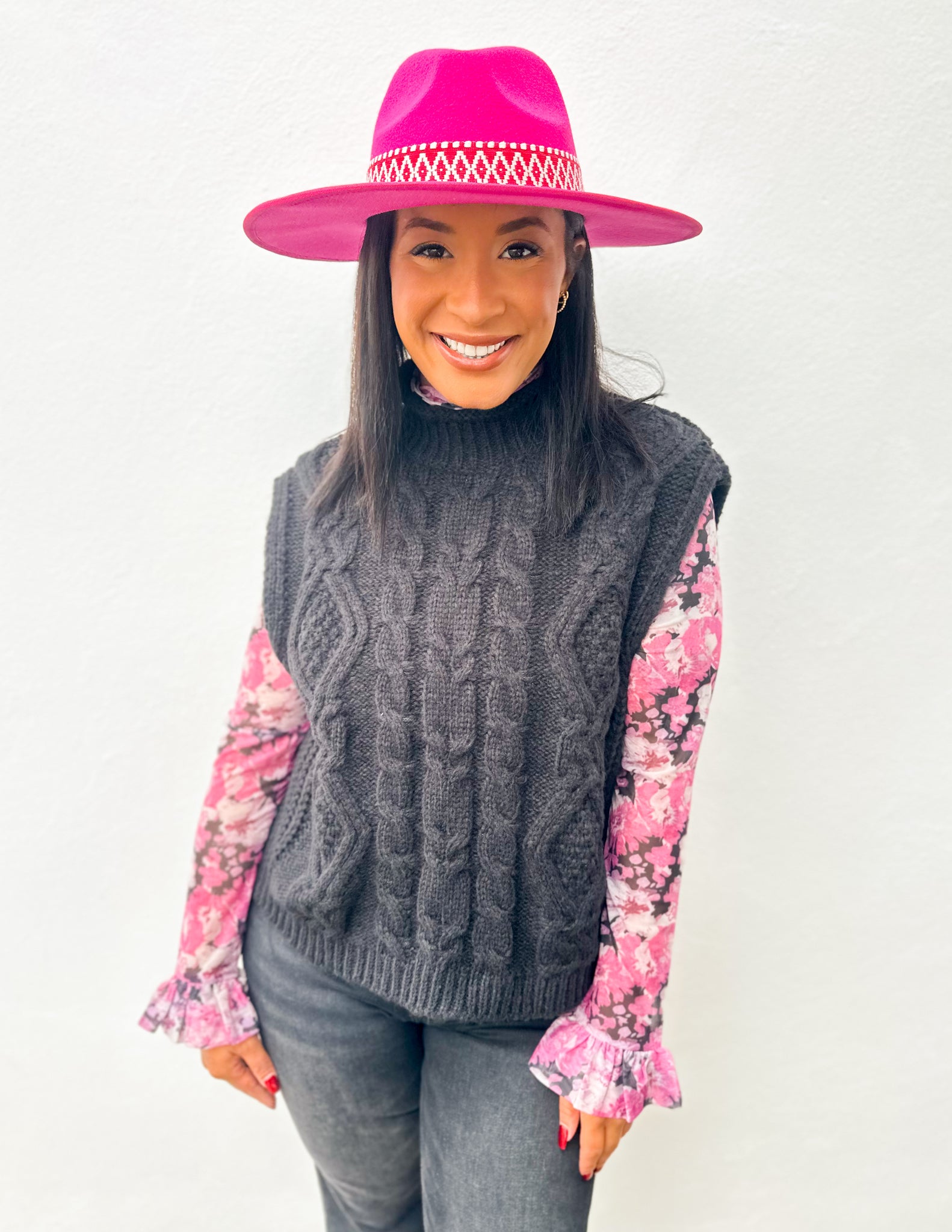 + Sheer floral mock neck top + Sheer floral mesh fabrication + Mock neckline + Long sleeves with ruffled cuffs + Fitted bodice + Model is 5' 10.5" 32-24-36 and wears a S