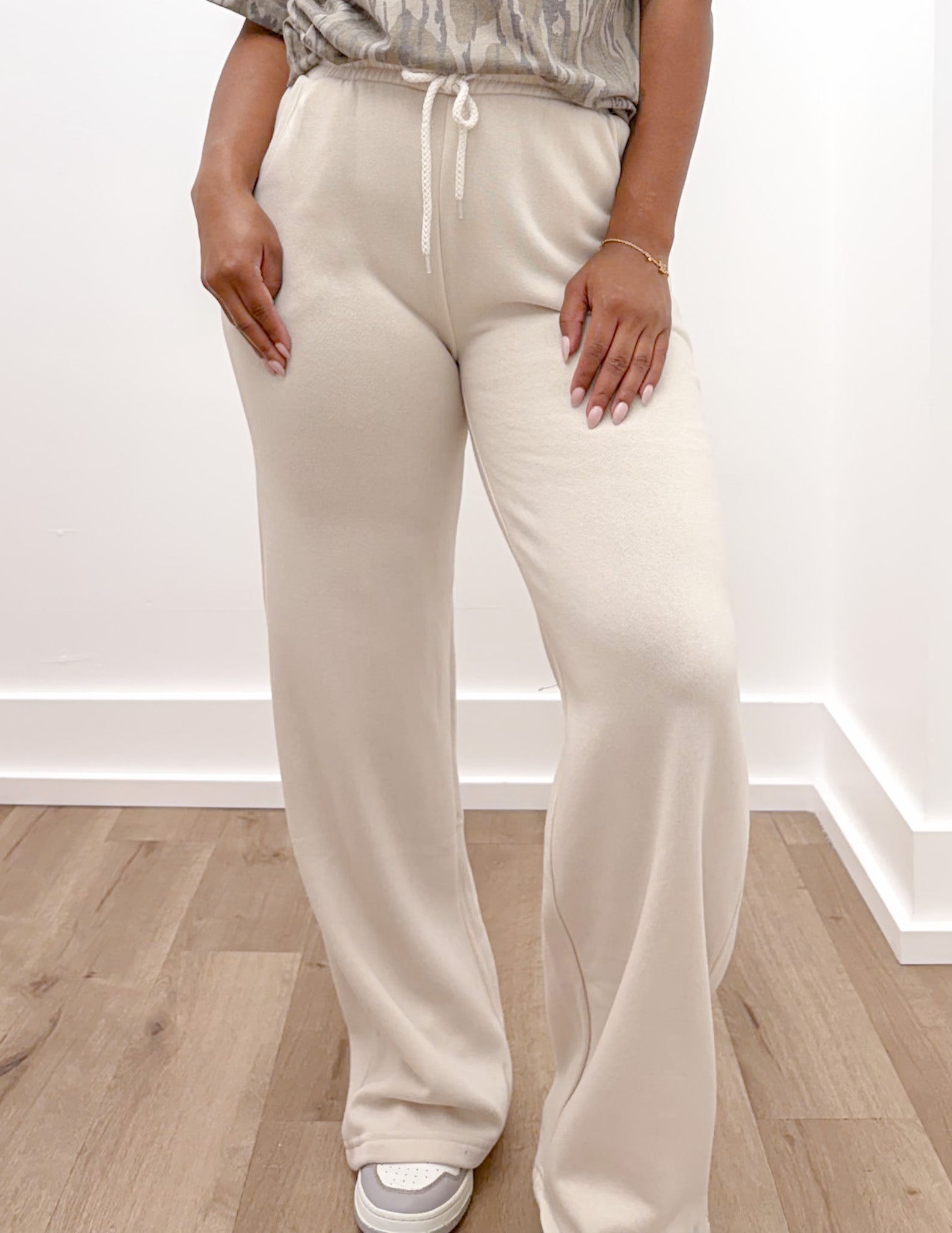 FLEECE STRAIGHT LEG MID-RISE JOGGER * Cozy Brushed Fleece * Side pockets * Adjustable drawstring