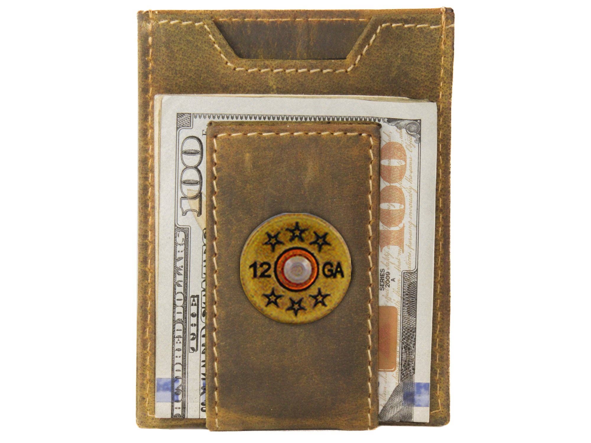 Shotshell Vintage Tan Leather Magnetic Front Pocket Wallet