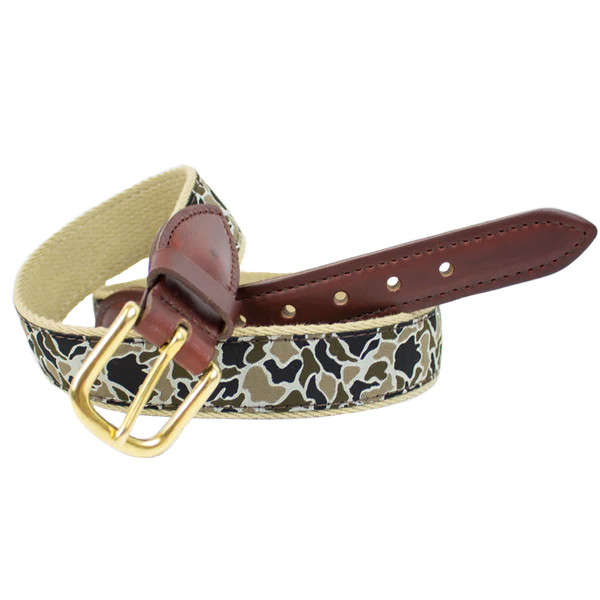 Over Under Clothing is proud to present our signature Duck Camo Pattern in a collection of American Made Ribbon Products. This "camo" belt is sure to make you stand out or "blend in" at your next Ducks Unlimited Banquet or trip across campus alike!