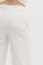 Denim mid rise culotte pants. Exposed button placket closure. Welt-pockets at front and patch pockets at back. Unlined. Woven. Non-sheer. Lightweight.