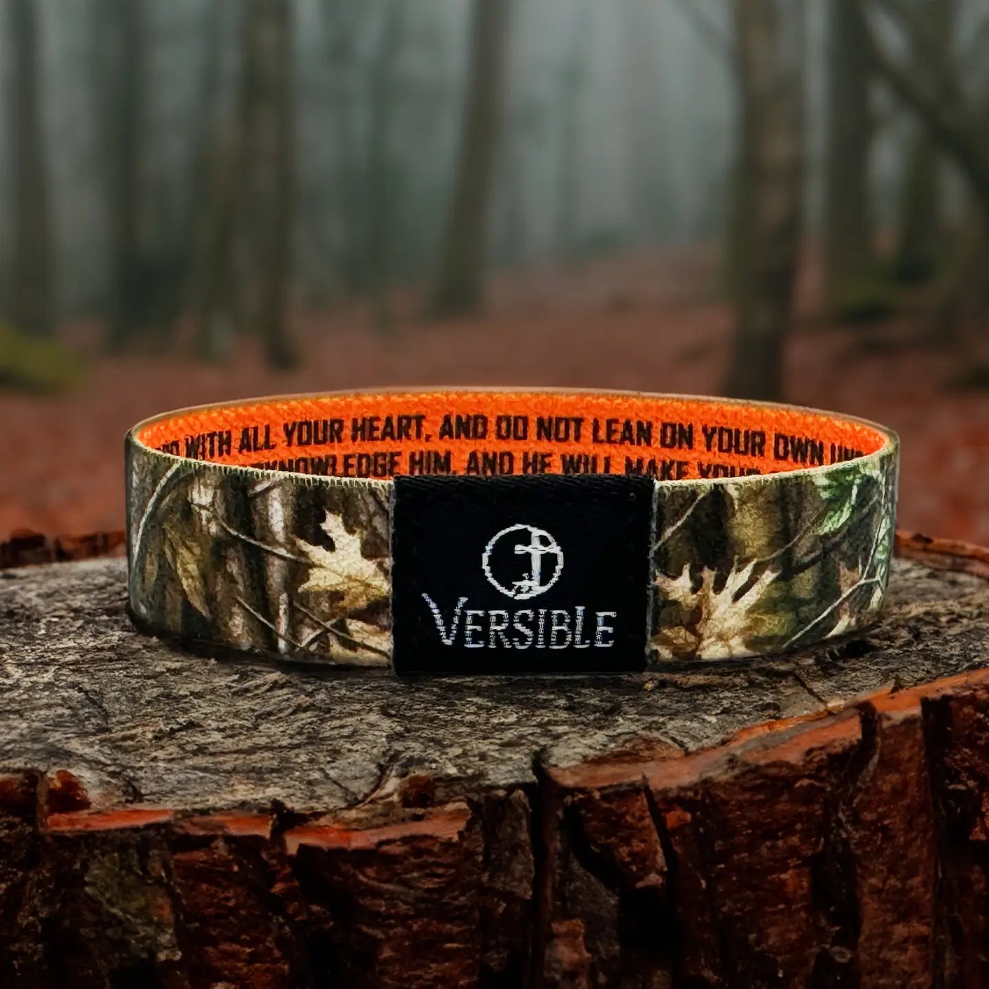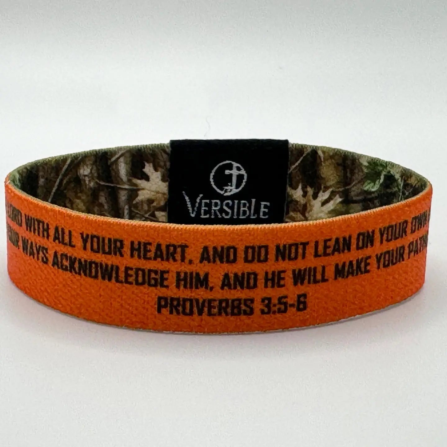 TRUST IN THE LORD WITH ALL YOUR HEART, AND DO NOT LEAN ON YOUR OWN UNDERSTANDING. IN ALL YOUR WAYS ACKNOWLEDGE HIM, AND HE WILL MAKE YOUR PATHS STRAIGHT. PROVERBS 3:5-6 With Proverbs 3:5-6 on one side, and a natural forest camo on the other, this design serves as a reminder to trust in God’s higher understanding to keep you on His path through all of life’s seasons.