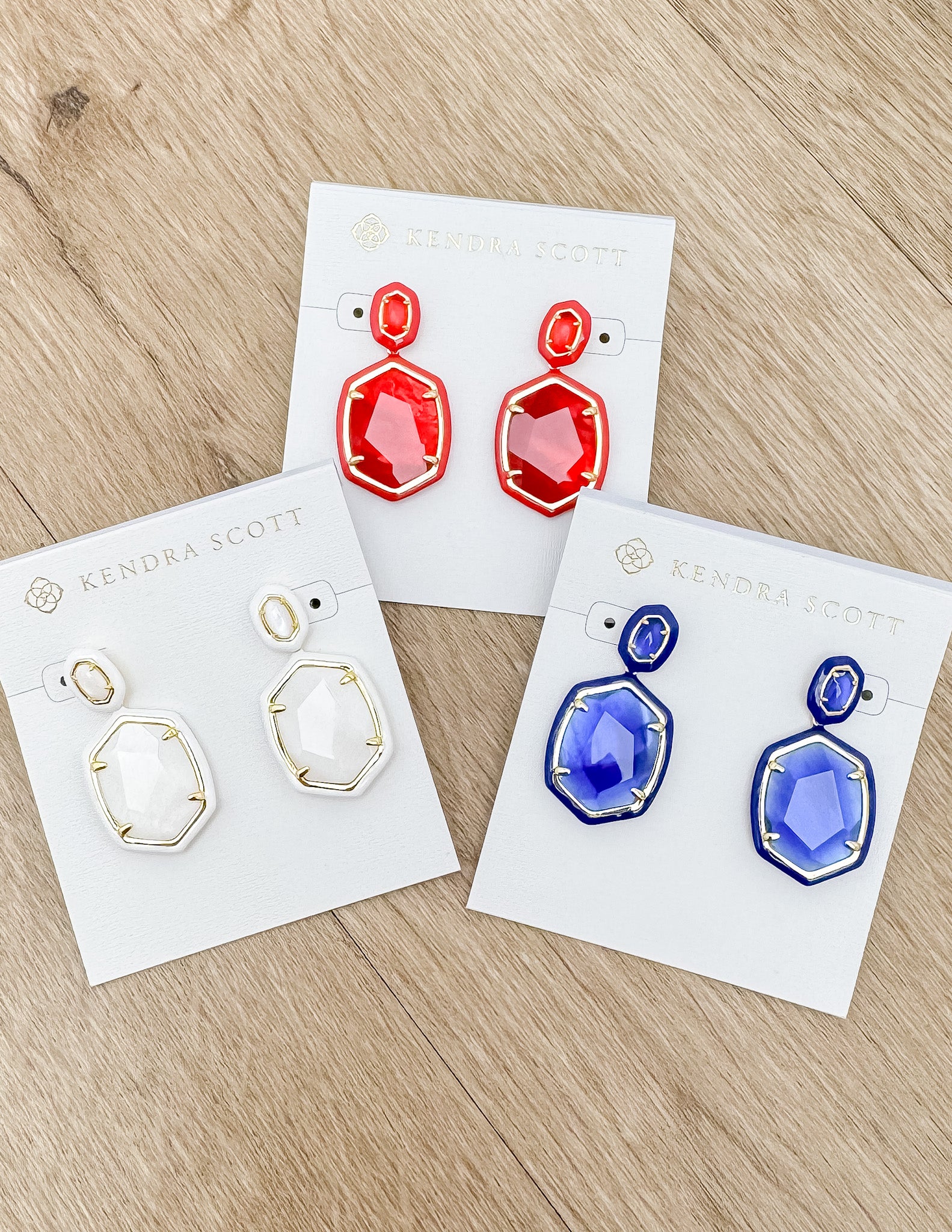Kendra Scott Daphne Enamel Frame Drop Earrings in Gold Cobalt Illusion