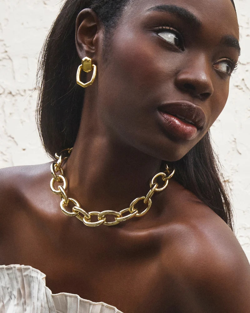 Is there a more perfect way to frame your face than with the Kaia Gold Open Frame Earrings? A timeless, elevated design, these are a must-have for chunky jewelry lovers. Want to get even bolder? Pair these with the Kaia Statement Chain Necklace for a look that’ll have all eyes on you.
