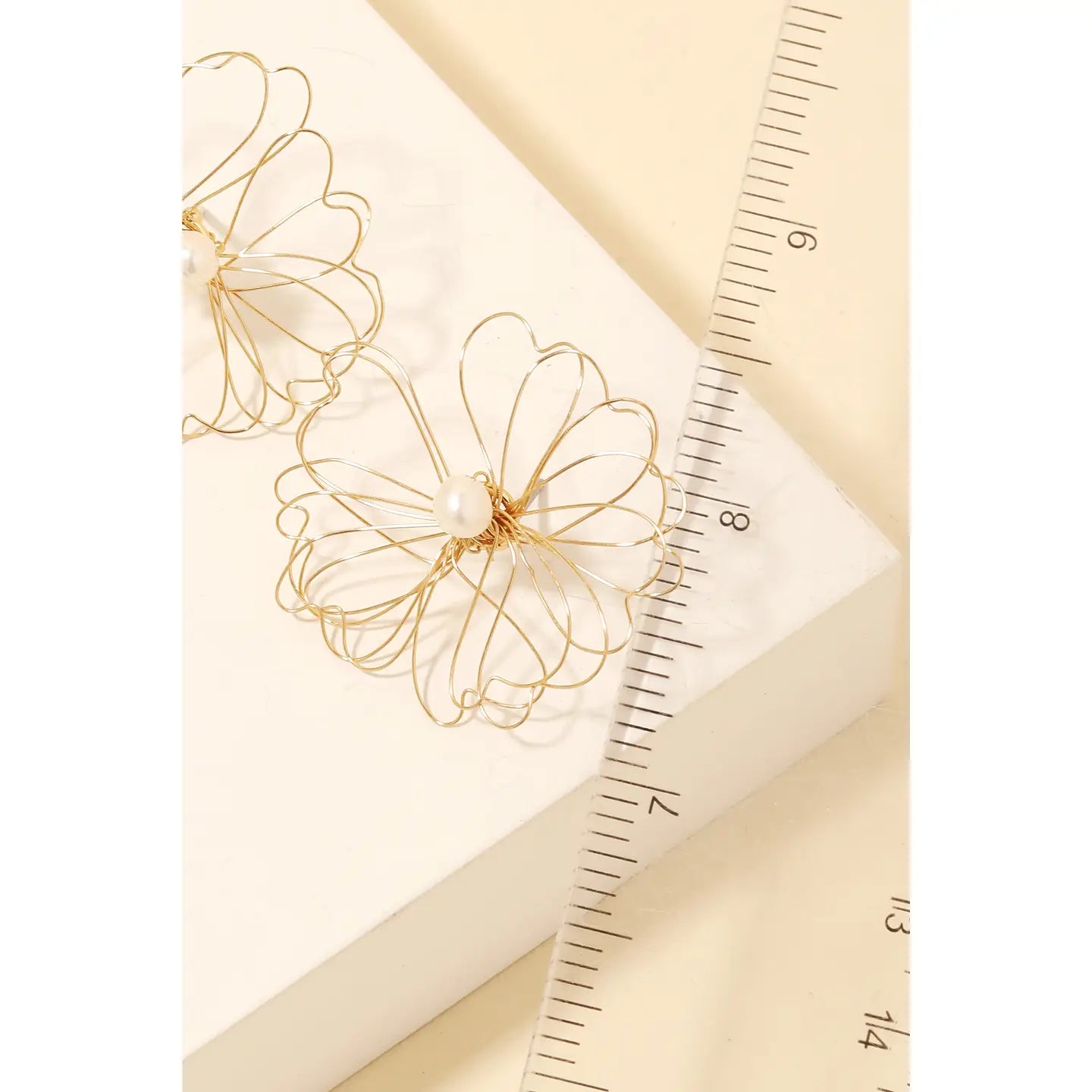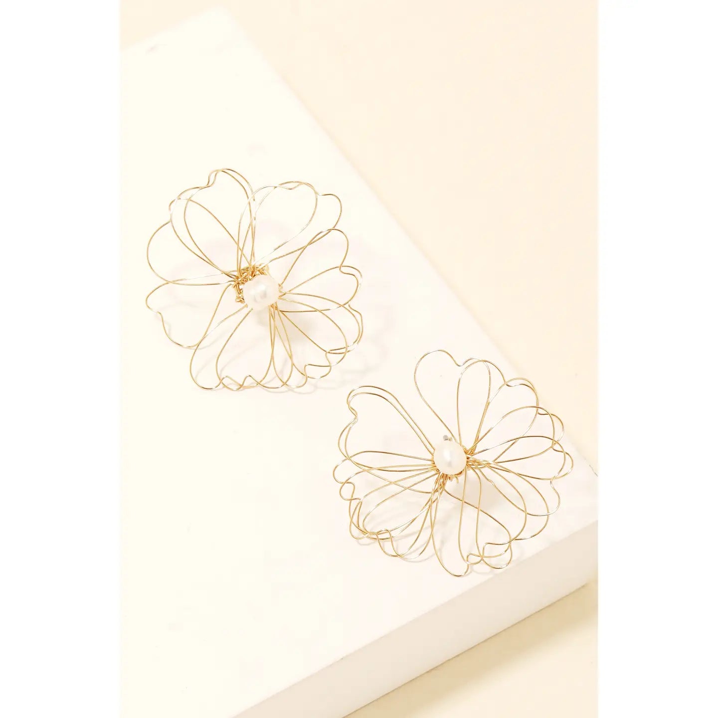 A classic design with a contemporary twist, this pair of stud earrings carries a charming thin wire frame flower design. This accessory is an effortless way to add some personality to your outfit. This pair of stud earrings is made with 80% Metal and 20% Pearl.
