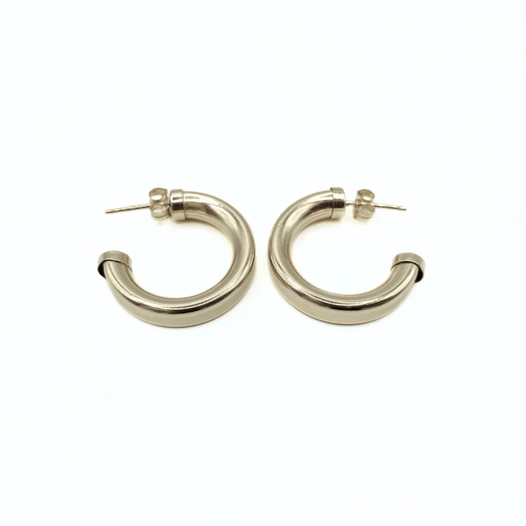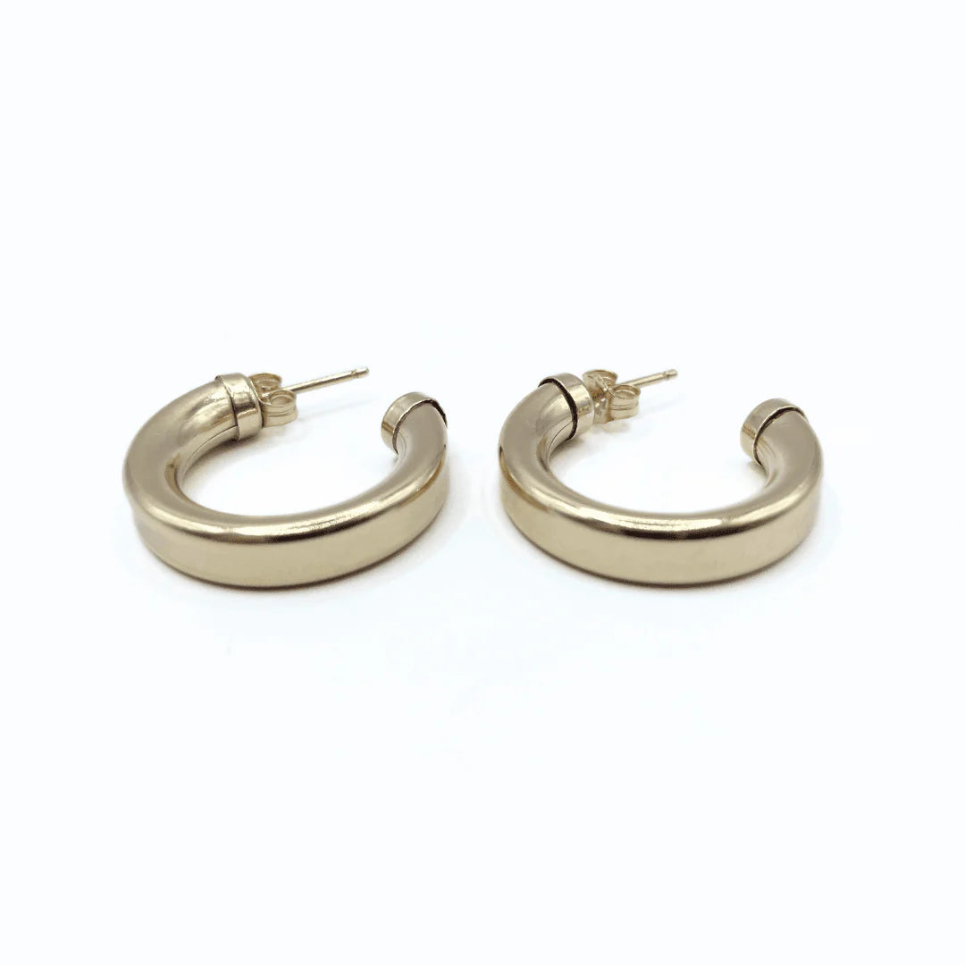 Our 14K gold filled post hoops are substantially thick and surprisingly light! Luxury hoops at an accessible price. From tennis court to poolside to boardroom, these elegant hoops will elevate any style. Waterproof. Will not tarnish.