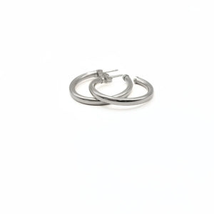 Our sterling silver post hoops are impressively thick yet light as air. 3mm thick. Perfect for daily wear and travel. Paris-worthy.