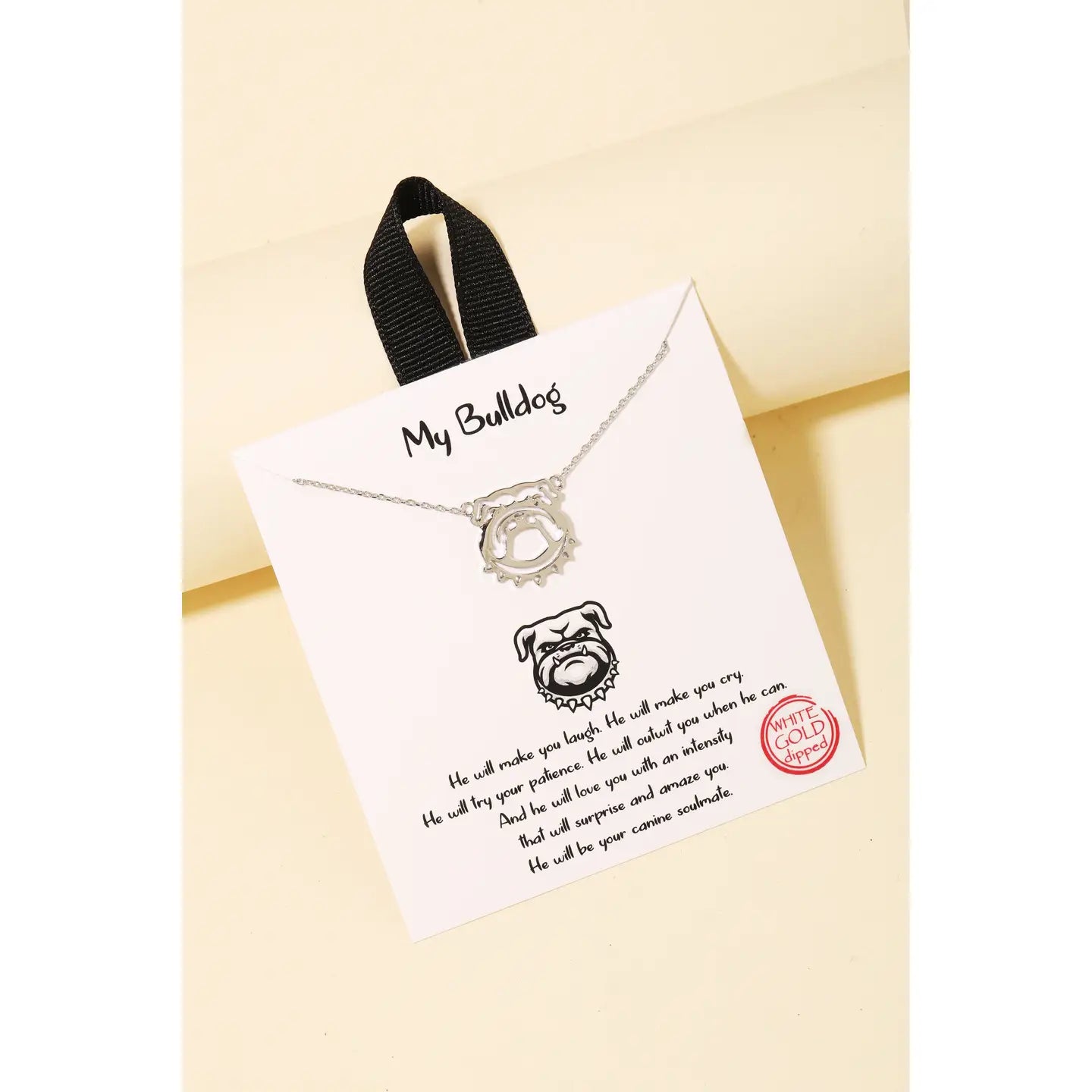 Add some edge to your wardrobe, this necklace highlights a special gold dipped bulldog pendant design. Unleash the charm of this versatile accessory, effortlessly turning any outfit into a fashion statement. Made In Korea. This necklace approximately measures: 16+2" Inches in Length. Gold - 18k Gold Dipped Silver - White Gold Dipped This necklace is made with 100% Brass.