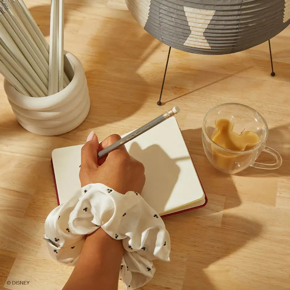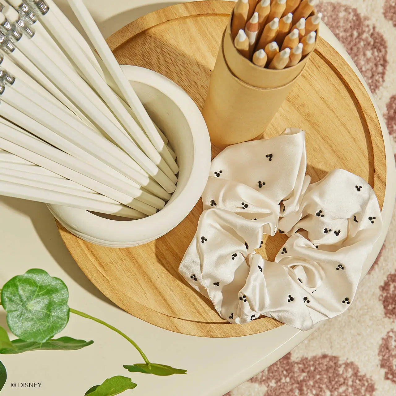 Add subtle shine to your look with this rhinestone-studded scrunchie inspired by Mickey and Minnie