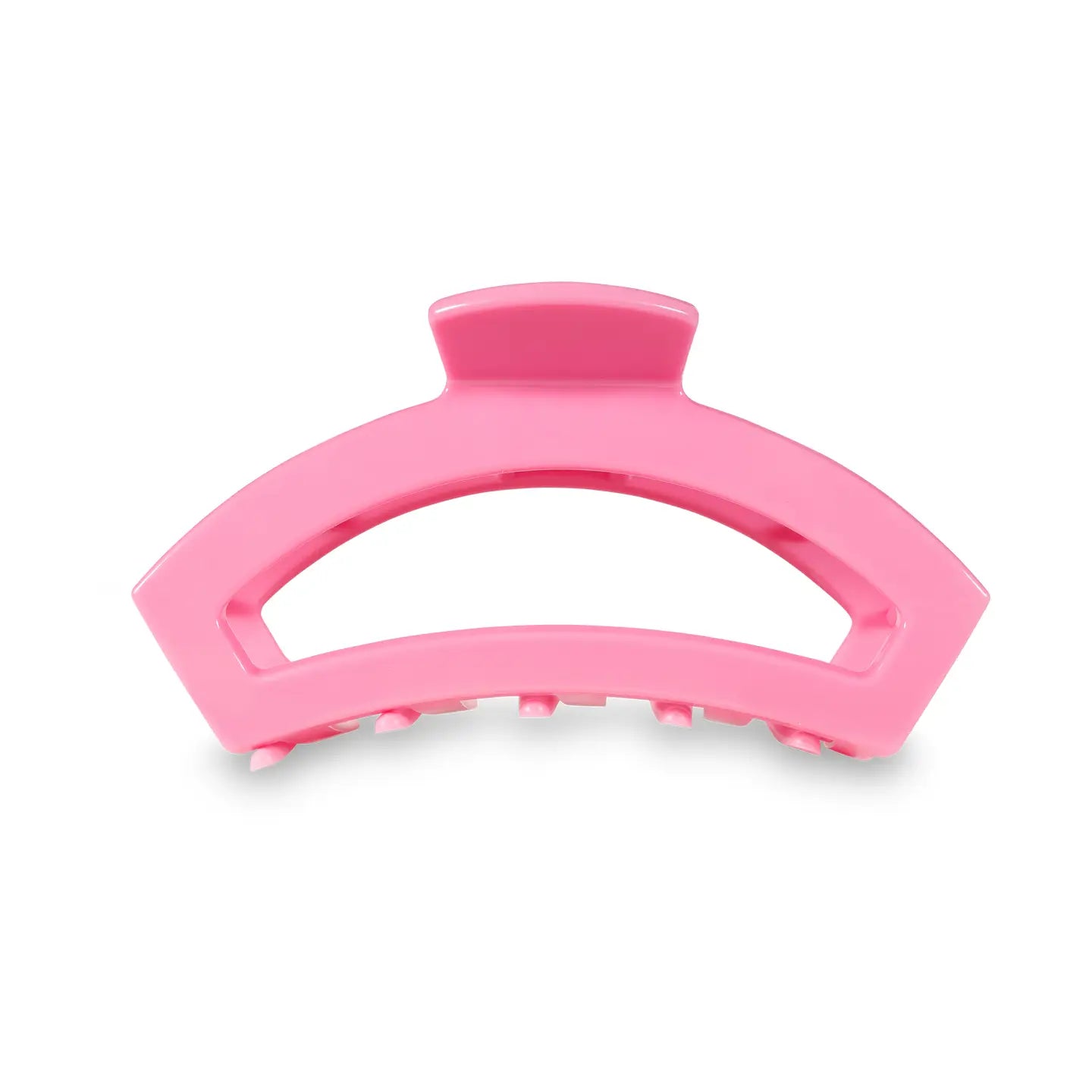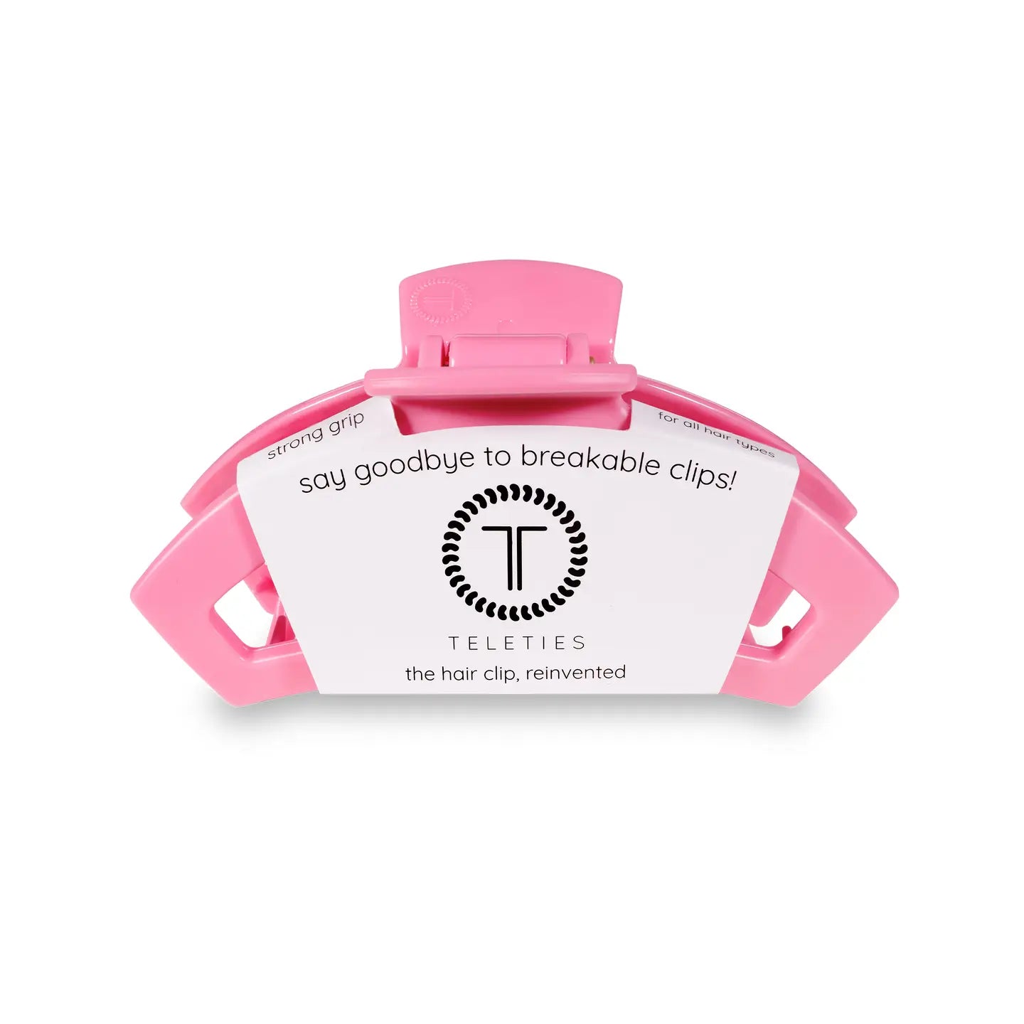Our Open Hair Clip offers the same incredible advantages as our Classic Claw Clip, but with a unique open-style design that allows your hair to show through. Say goodbye to breakable clips! We have perfected the hair tie and now have re-invented the hair clip. Each clip has bendable teeth that take back to shape, they work on all hair types and have a strong hold. Hold your hair and enhance your style with the new TELETIES Clip! Medium clips are great for thick to medium thickness of hair.
