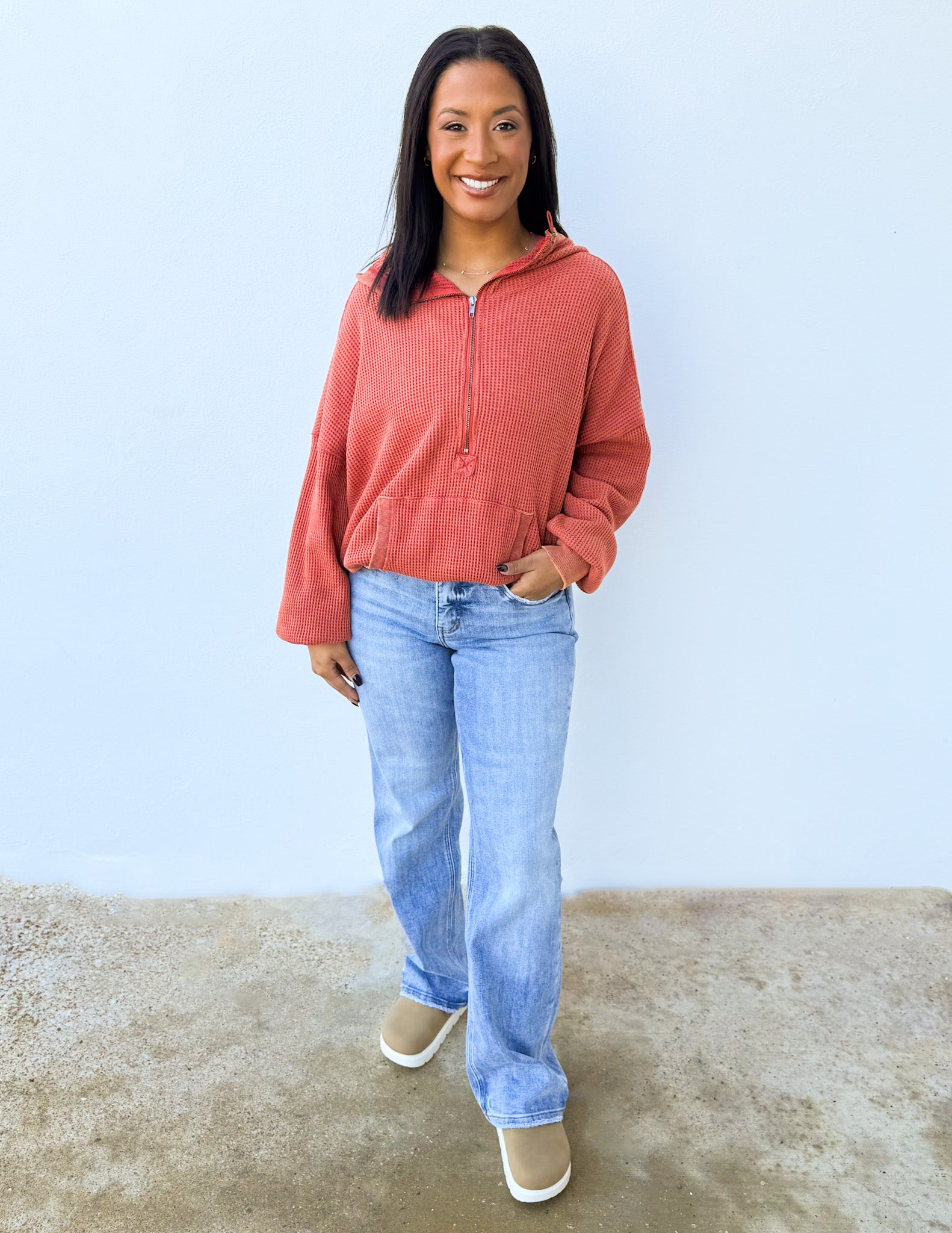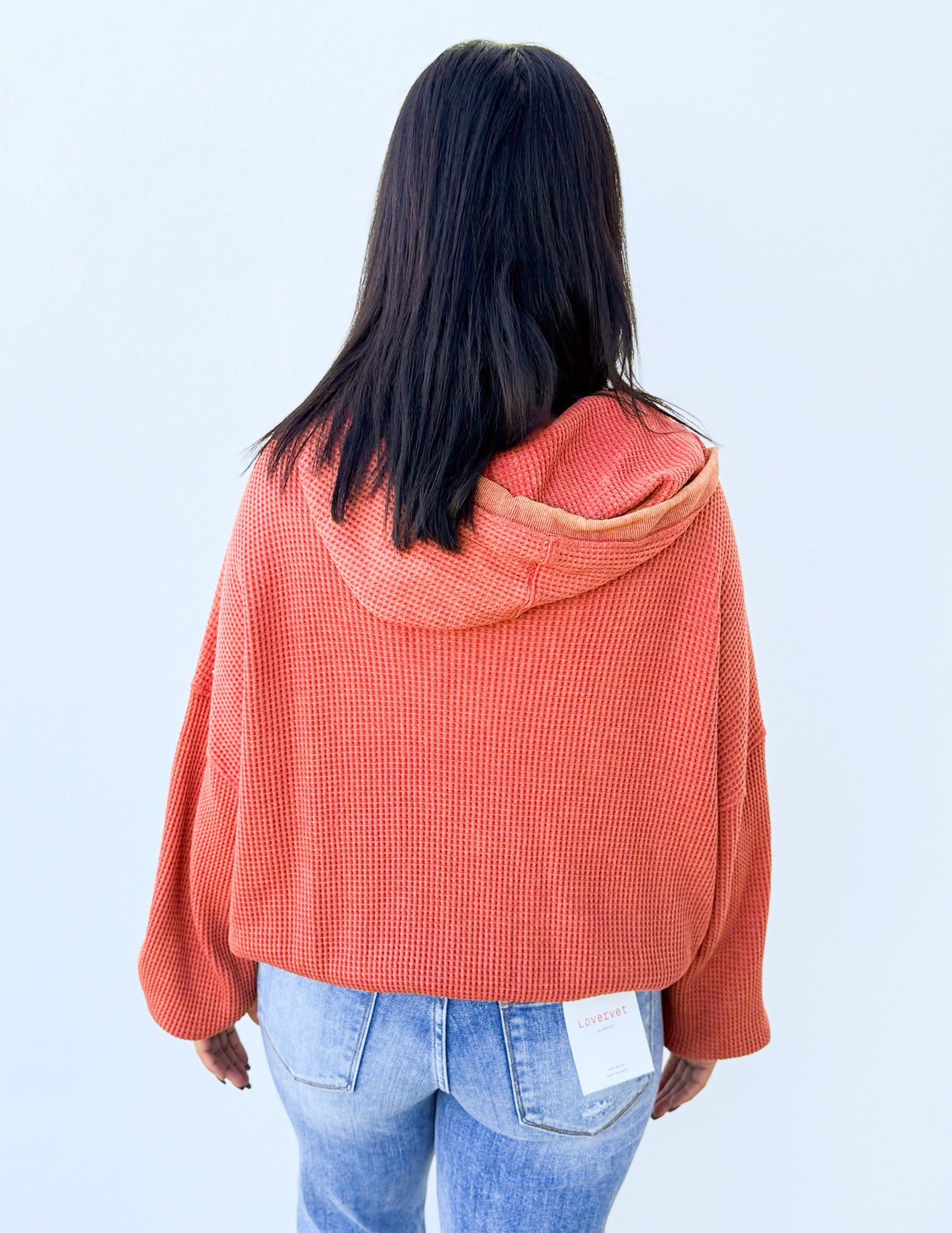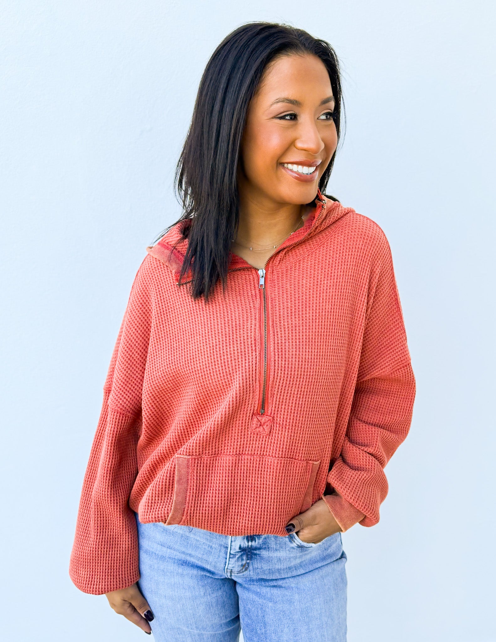 VINTAGE WASHED WAFFLE THERMAL HALF ZIP UP HOODIEadult female