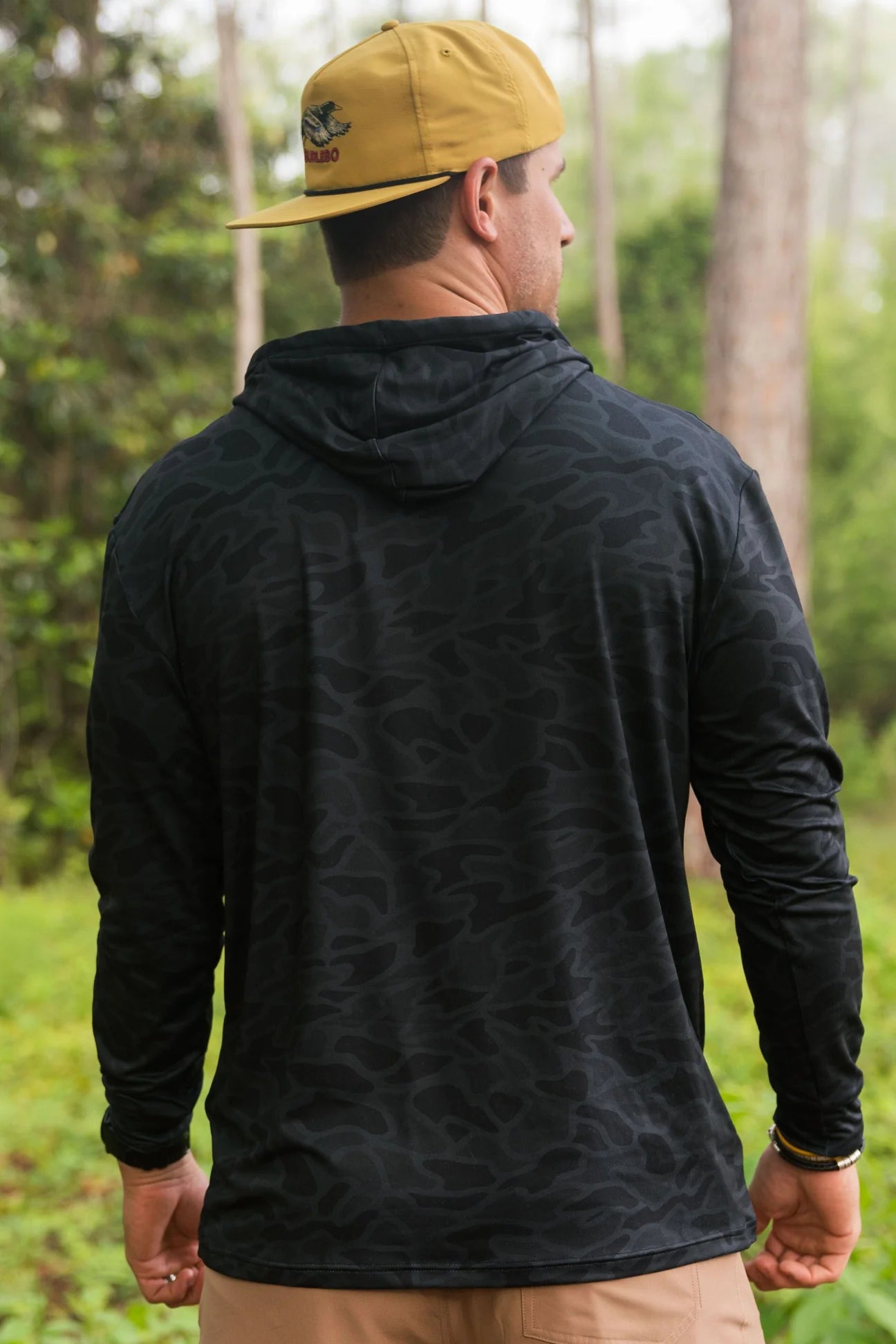 Performance Hoodie, designed for the modern athlete. Created from a premium blend of 91% Polyester and 9% Spandex, this hoodie offers quick-dry, moisture wicking, and UPF 50 protection. Featuring anti-microbial technology, it keeps you fresh and odor-free. With a sleek fit, it’s perfect for Trey, who stands at 6’1’’ and 210 pounds, wearing a size Large. Versatile for any activity, wear it working out, fishing, hunting, or for everyday wear. Experience style and performance in one with our Performance Hoodie.