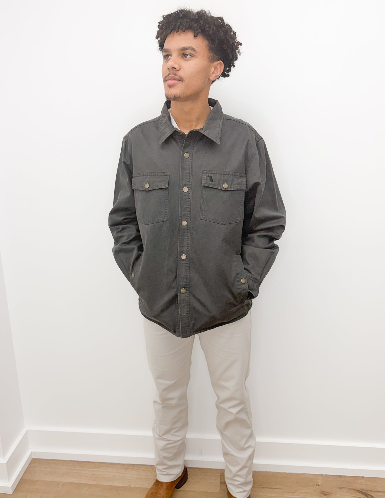 Is it a shirt or a jacket? While there's room for debate, one thing is for certain: this thing is as sharp as a tack. Cut in a traditional fit with a curved bottom hem for added mobility, this mid-weight superstar is our take on the traditional chore jacket. Featuring logo snaps at the placket and snap-flap upper exterior pockets, we accented these slick tricks with contrasting designs on the interior. Double-stitched throughout for durability and finished off with stacked buttons at the cuff and a leather LBO logo patch at the back, this versatile do-all is sure to add some smooth to your groove.