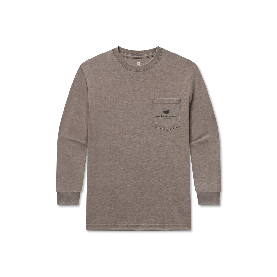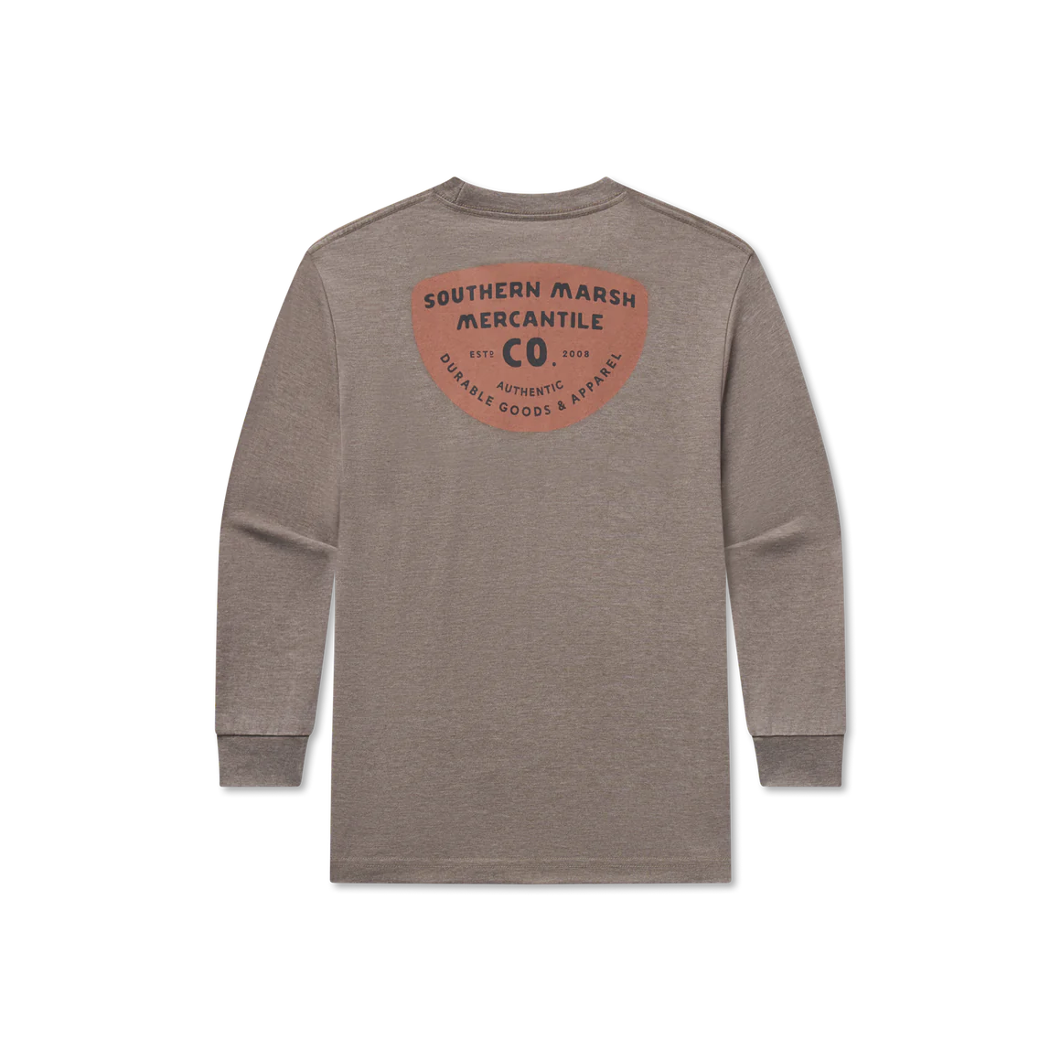 Crafted from an ultra-soft poly-cotton blend, our long sleeve Youth Seawash™️ Mercantile Badge crew neck tee is great for play time outside with friends. Featuring a front pocket and custom back design, this t-shirt is tagless and designed for a comfortable fit all day.