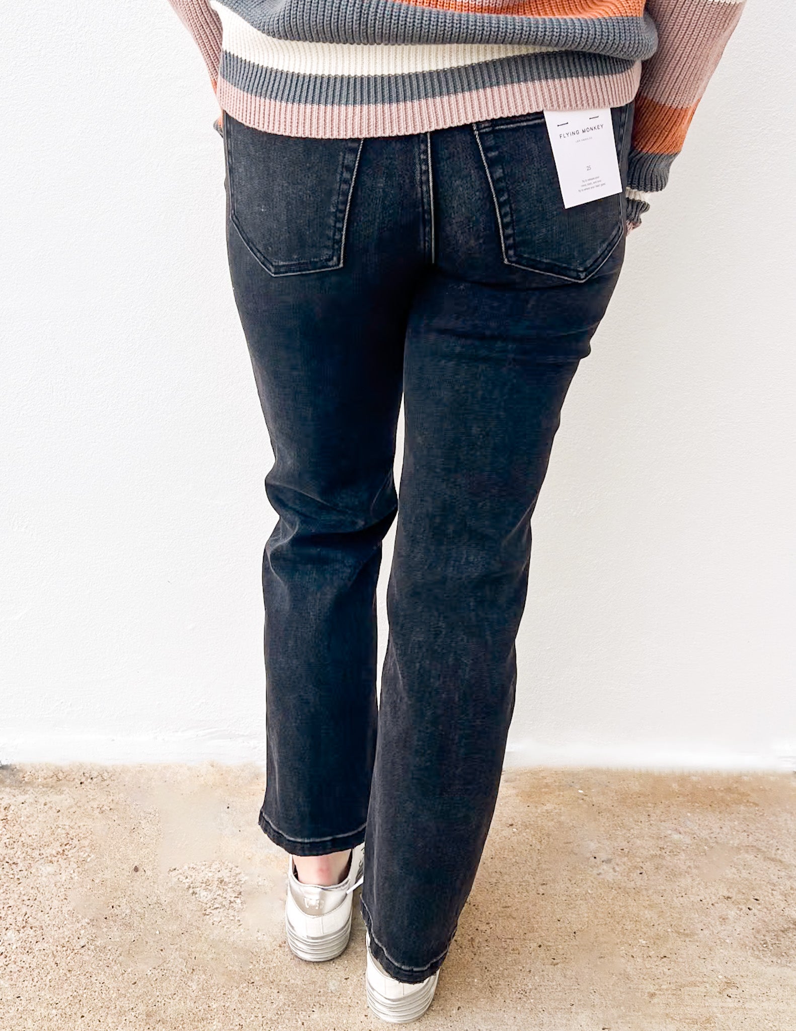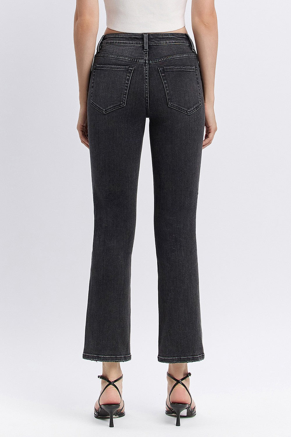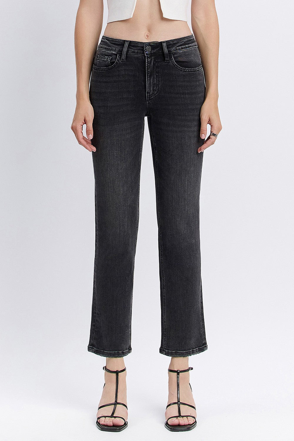 COMFORT STRETCH DENIM, HIGH RISE WAIST, FINISHED HEM, ANKLE LENGTH, STRAIGHT JEANS