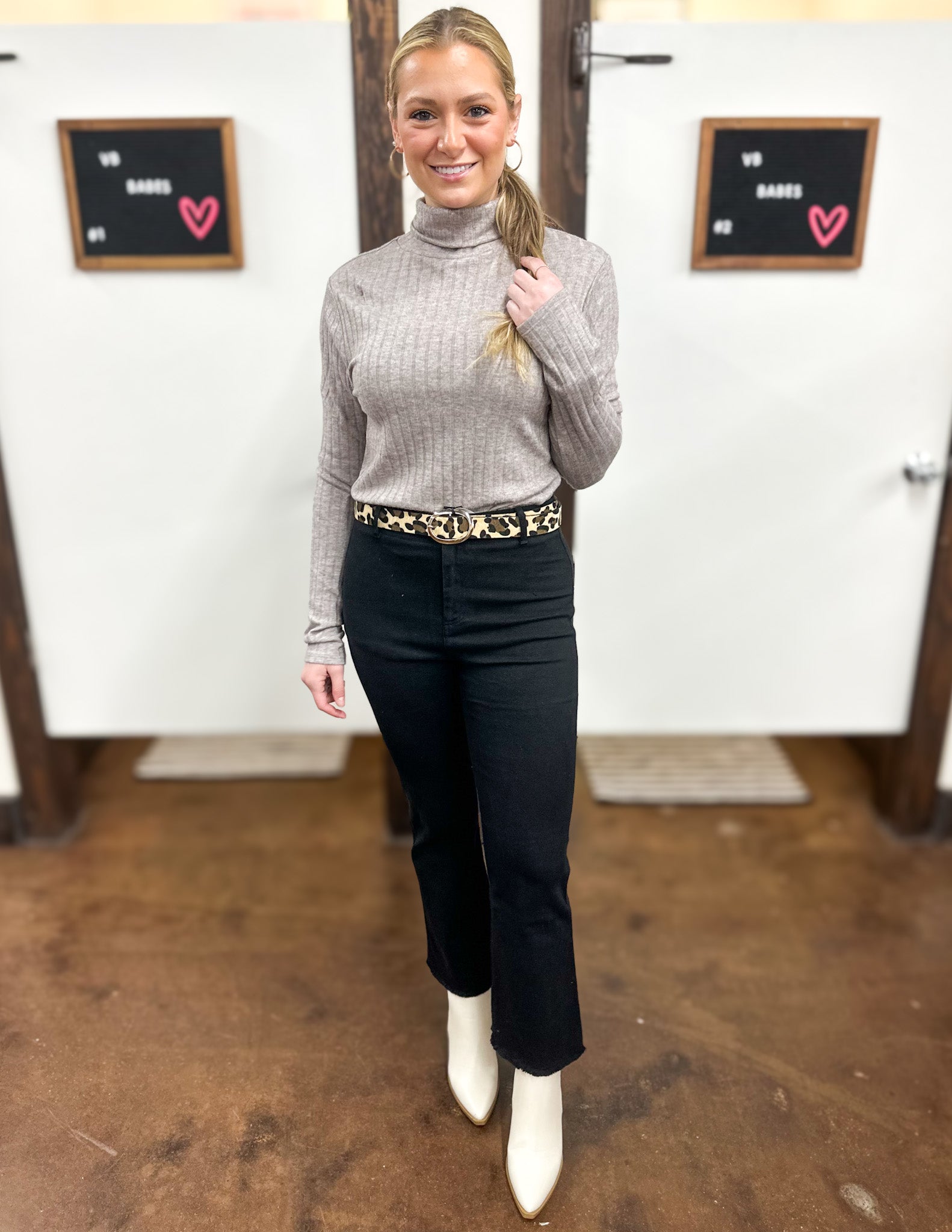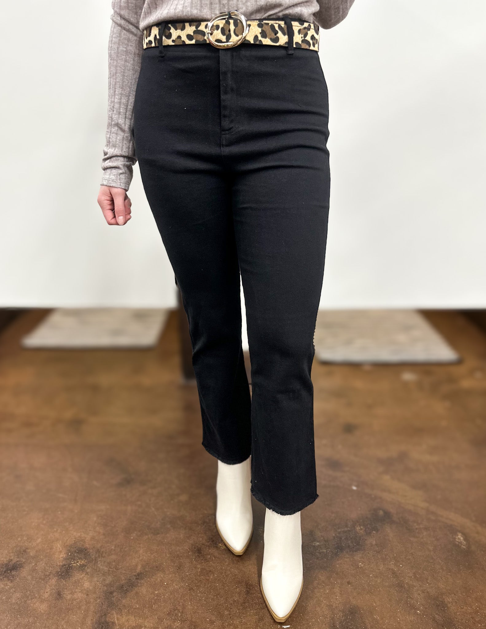 featuring high-rise, button closure at front, wide leg that hits above the ankle. Cut