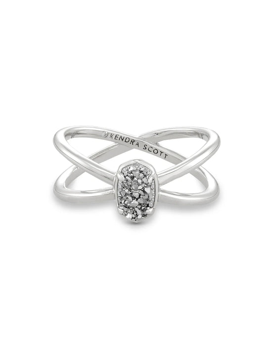 Kendra Scott Emilie Double Band Ring Silver Platinum Drusy