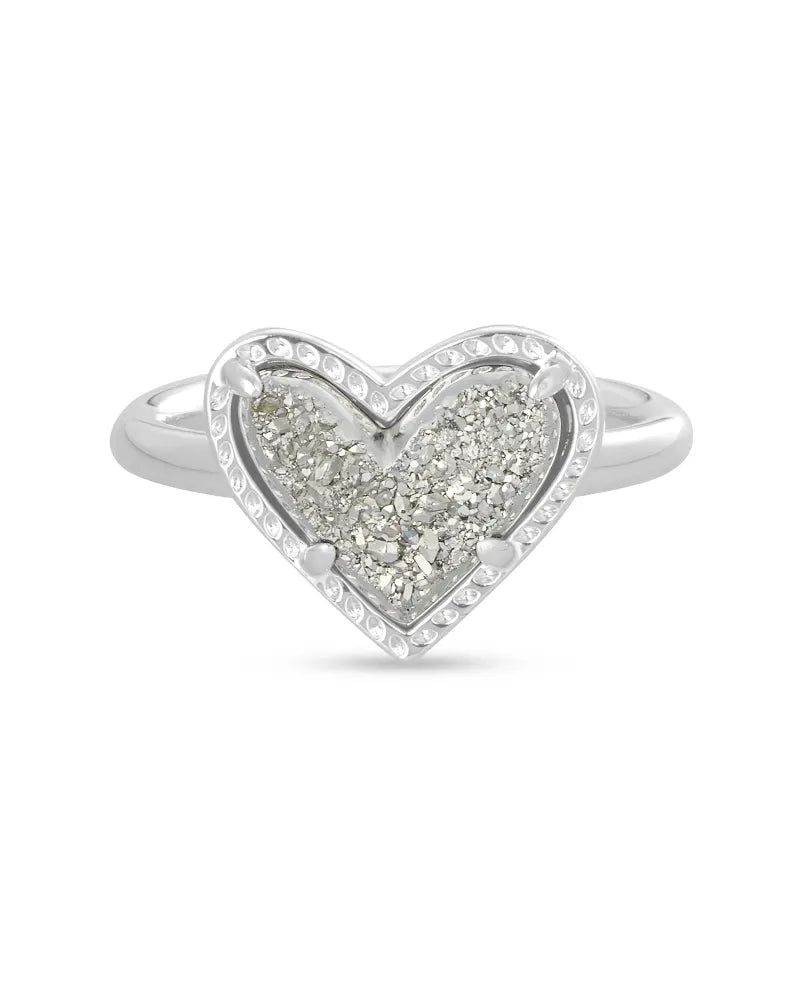 What's not to love about the Ari Heart Silver Band Ring in Platinum Drusy, defined by an asymmetrical design of one of the world's most iconic symbols?
