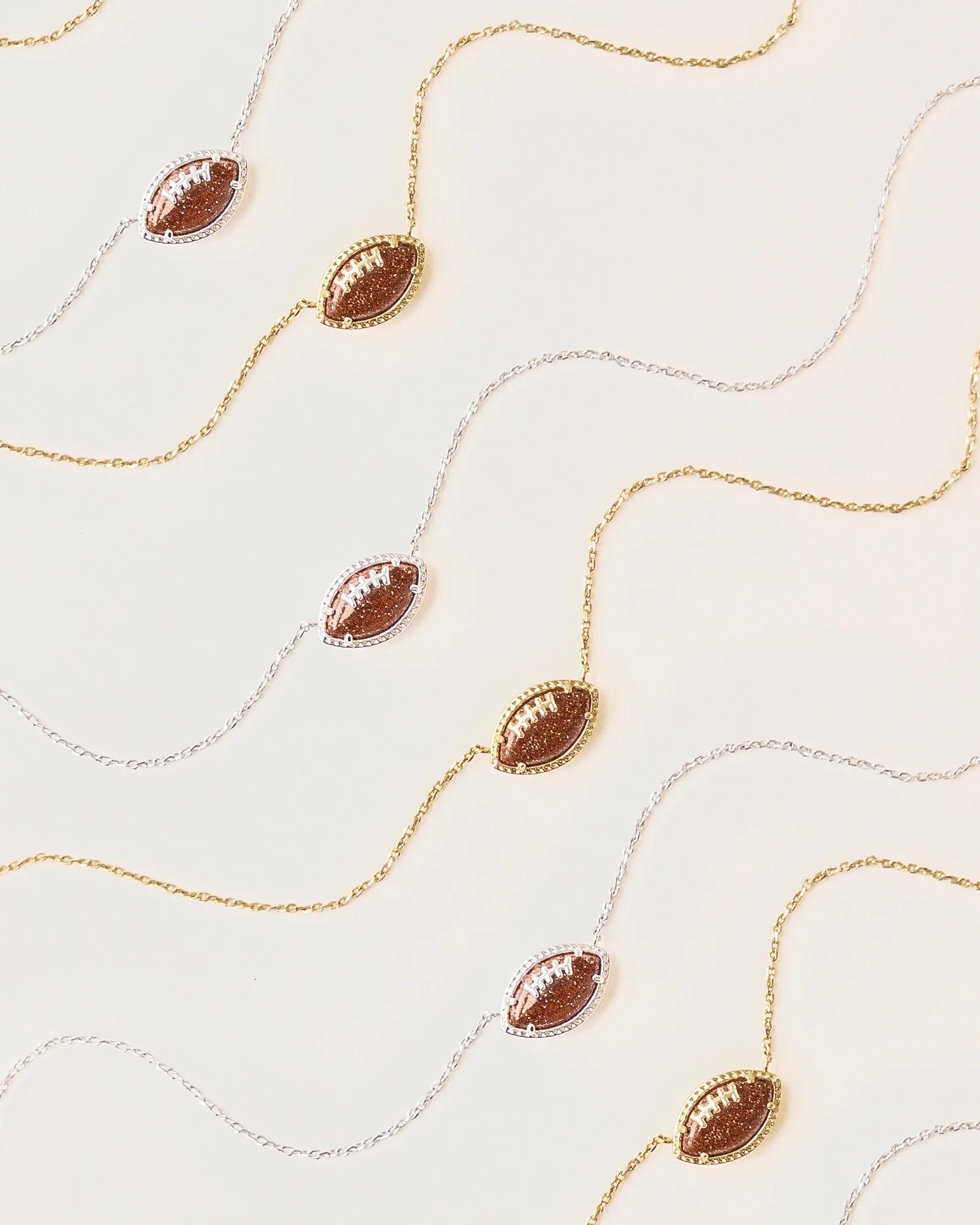 Our signature pendant style in a football shape? Touchdown! The Football Silver Short Pendant Necklace in Orange Goldstone is the perfect way to put the “game” in your game day look. Layer with your favorite chain or wear as a standalone necklace—either way, you’ll be the most stylish fan in the stands.