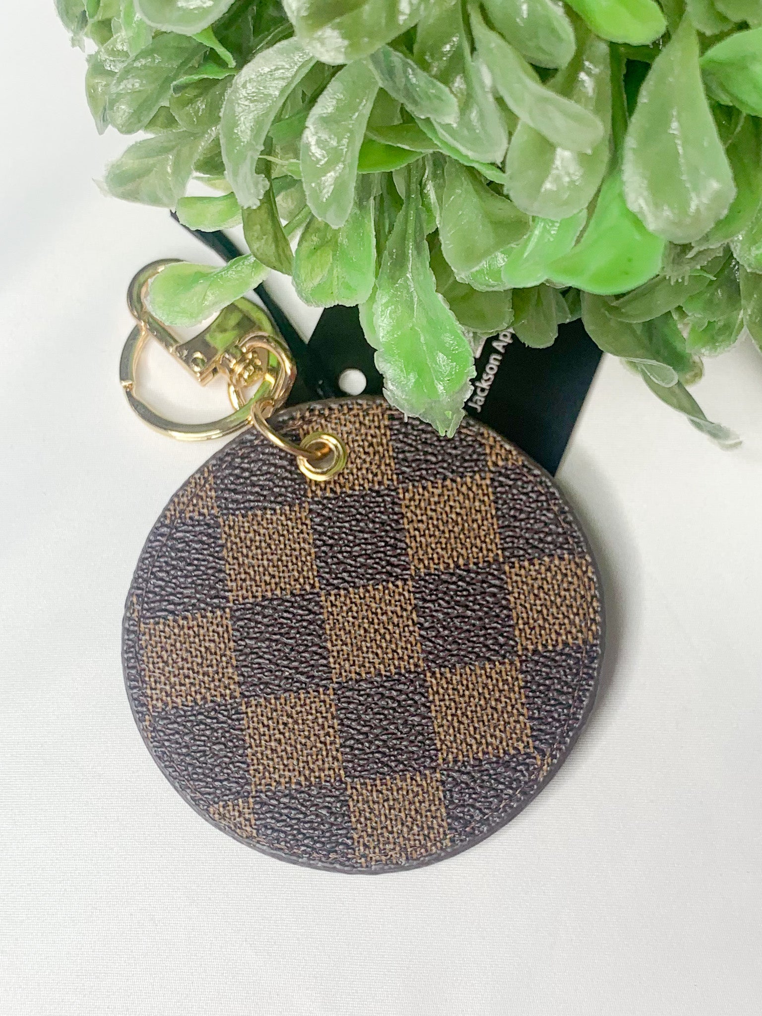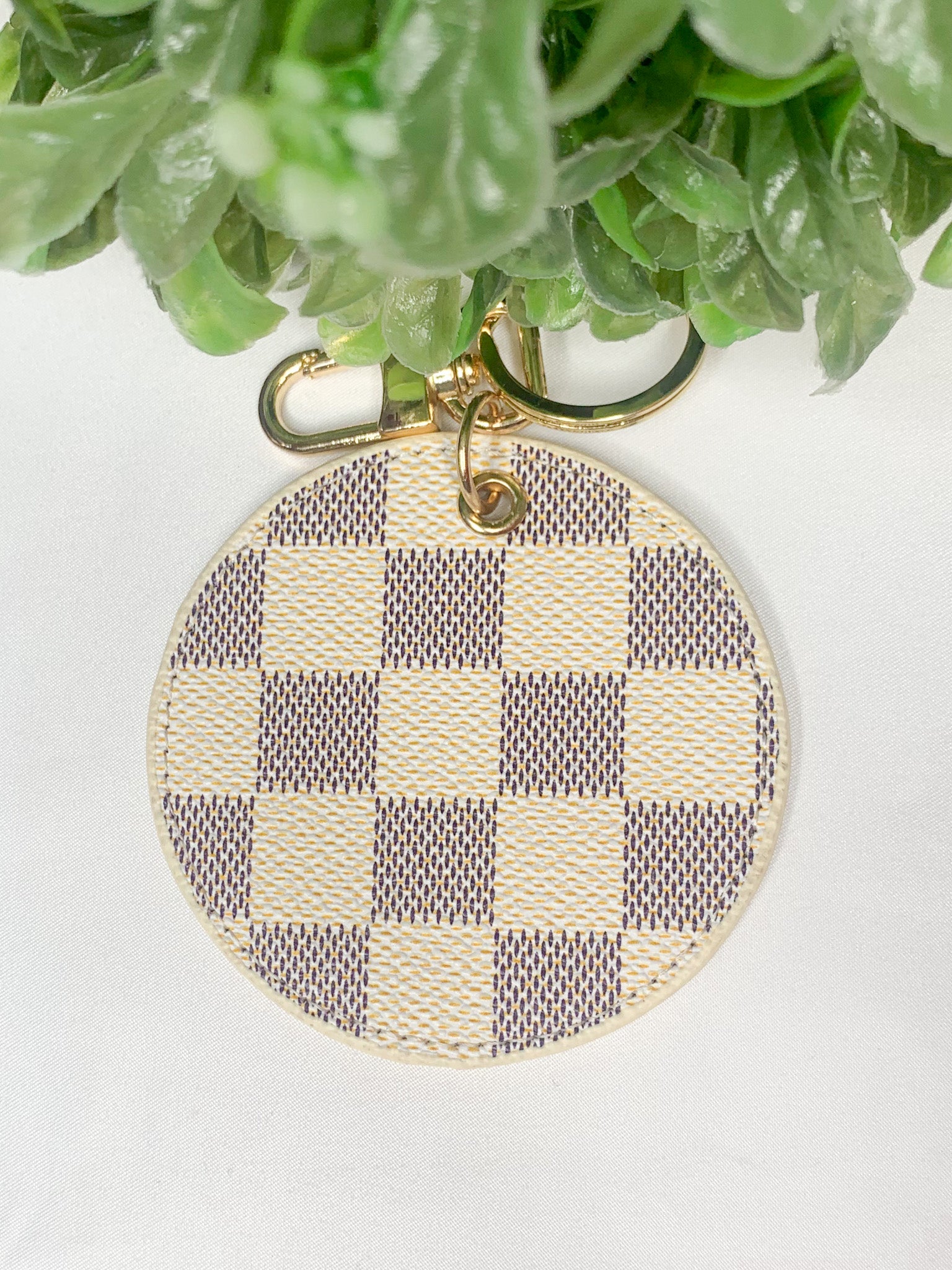 - gold hardware on cream or brown