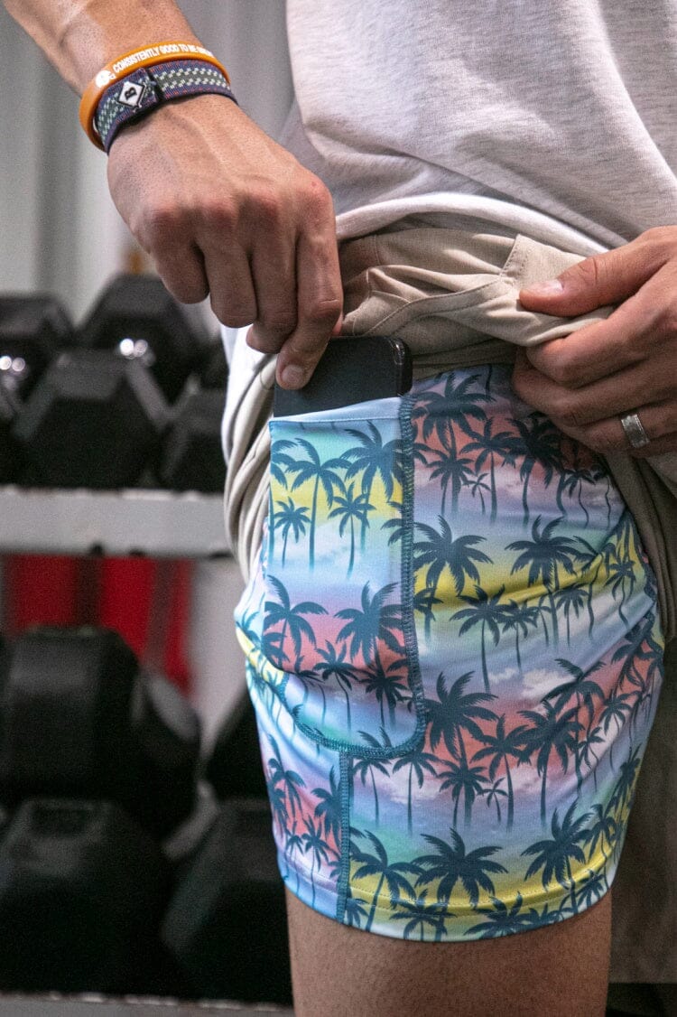Burlebo Heather Khaki Athletic Shorts Palm Tree Liner