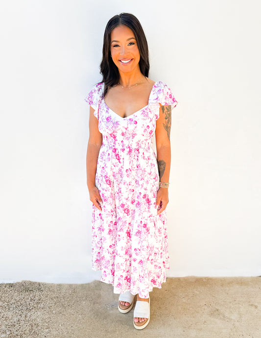 Sun On My Face Floral Flowy Maxi Dress in Pink