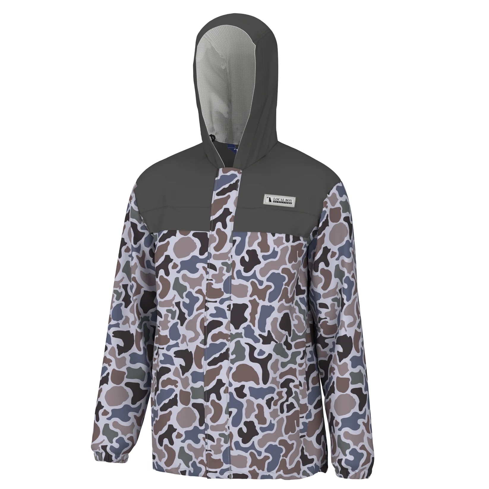 Clear confirmation that superior rain protection can be both lightweight and breathable, our LBO rain jackets are constructed from a tightly-woven technical fabric, coated in water resistant PVC and kitted out with zip vents at the armpits so you stay cool while keeping dry. Additional touches include a reinforced panel hoodie, exterior zip pockets, interior open pockets (for quick access), elastic cuffs and a storm flap closure that snaps over the front zipper for added protection from the elements. Wind resistant and machine washable, they can be folded into their own pocket for ultra-portability, finished off with an LBO logo patch at the front and a "dog and moon" on the back, it's a smart looking layer that's for sure to bring some pain to the rain.
