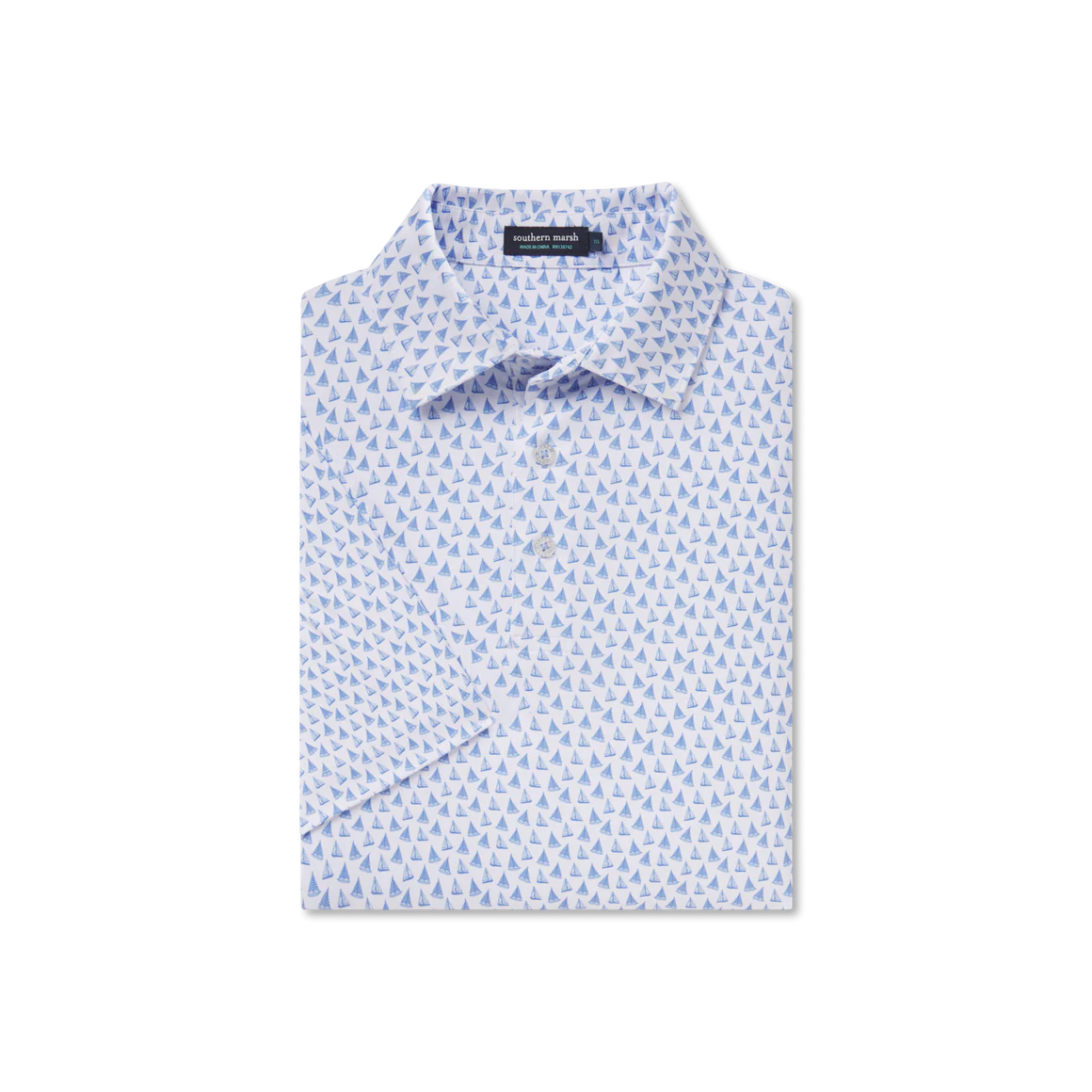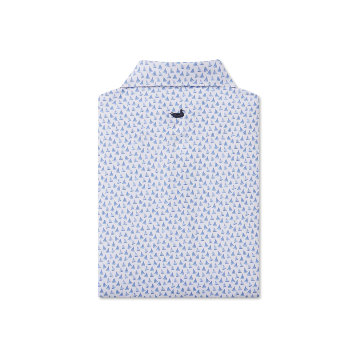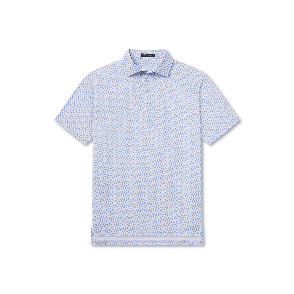 Embrace the nautical spirit with this crowd favorite now available with a Regatta Sailboat micro print design. Engineered for breathability on hot southern days, the Flyline Performance Polo - Regatta keeps you cool and composed whether at sea or in the office.