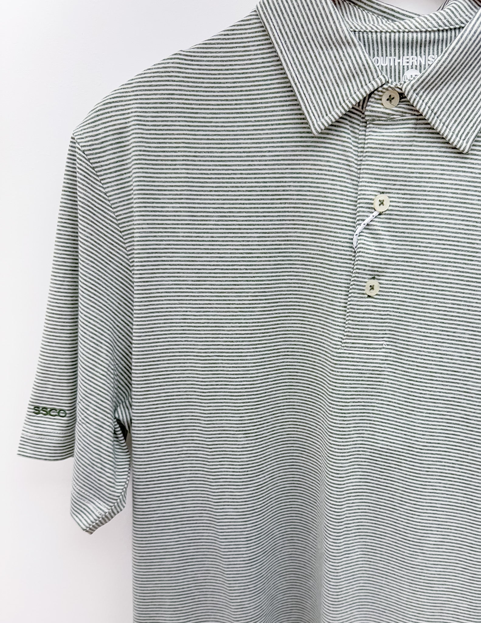 Southern Shirt Heather Madison Stripe Polo in Dusty Olive