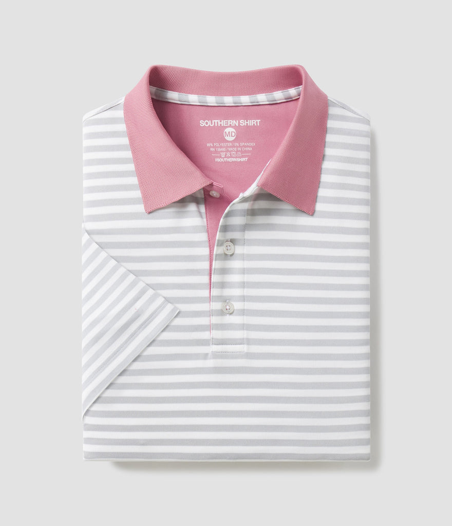 Designed to deliver all day comfort, this polo is constructed from a breathable performance-blend fabric that features moisture-wicking and four-way stretch. It's styled with one of our traditionally designed stripe patterns for a clean look that is sure to impress.