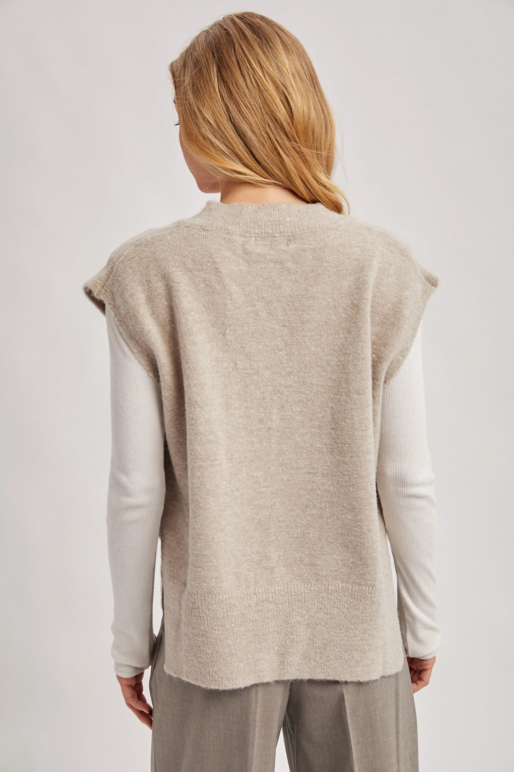versatile look. The vest is designed with a ribbed neckline and hem,