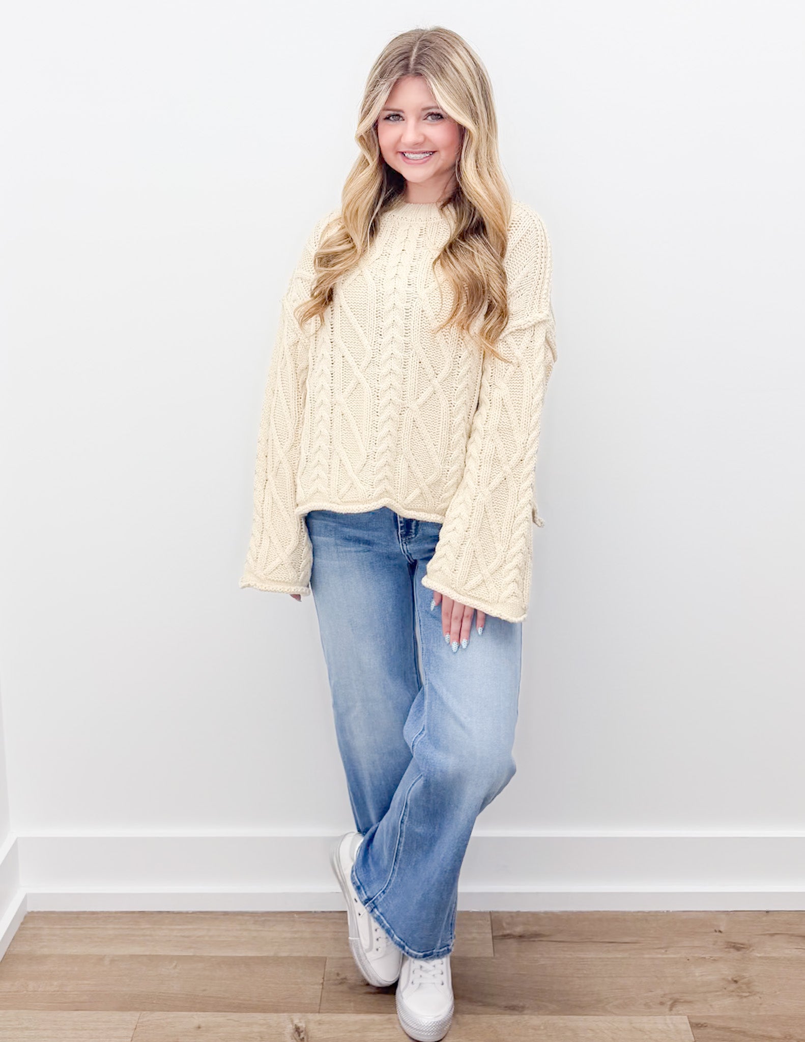 Hanging Around Oversized Cable Knit Sweater in Cream