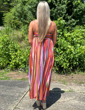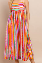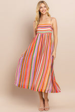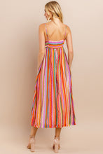 Abstract striped midi dress, with adjustable spaghetti straps.