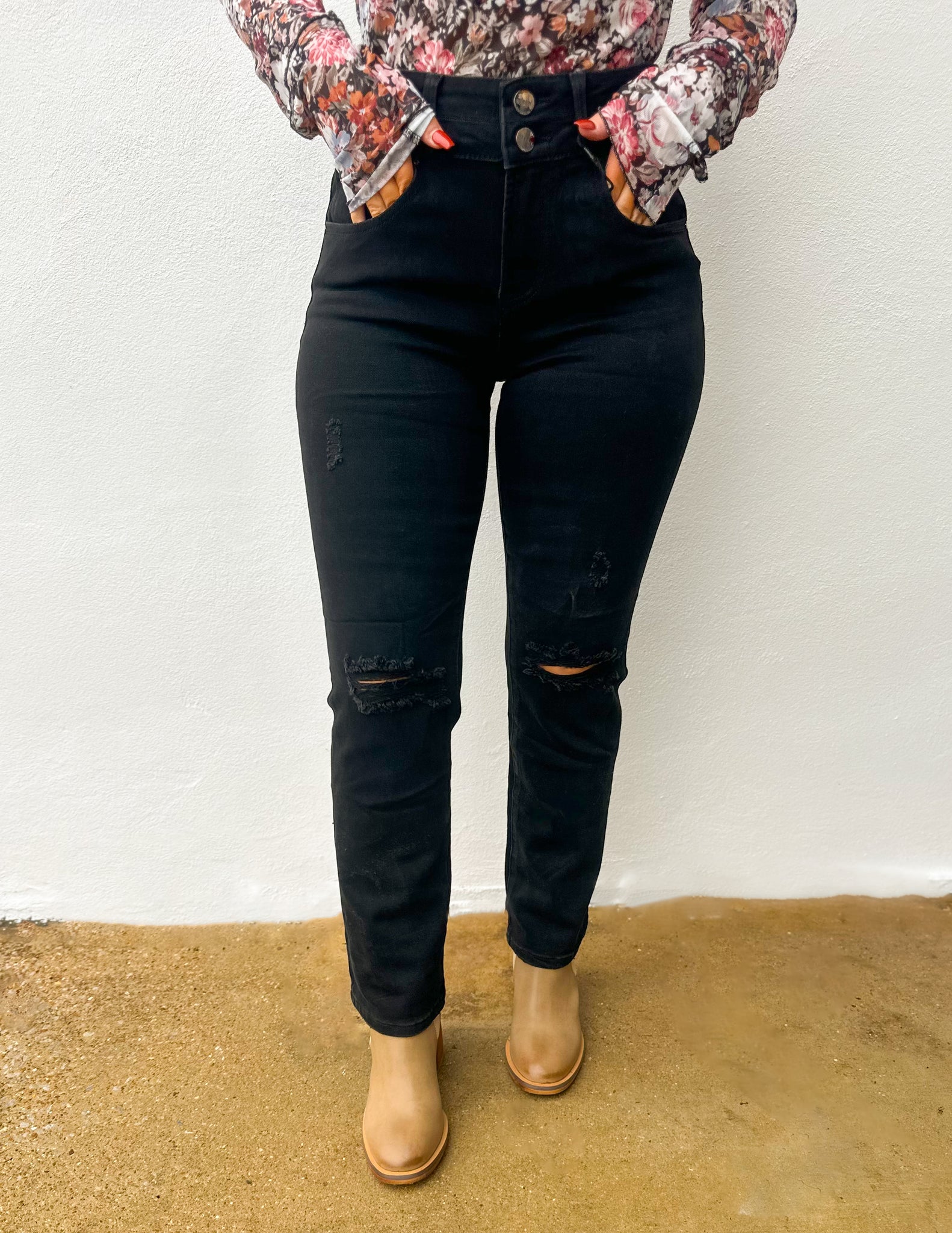 HIGH RISE ANKLE STRAIGHT JEANS - Rise 10" | Inseam 28" in size 3/26 - Model Info: Height 5'8" | Waist 24" | Hips 34"