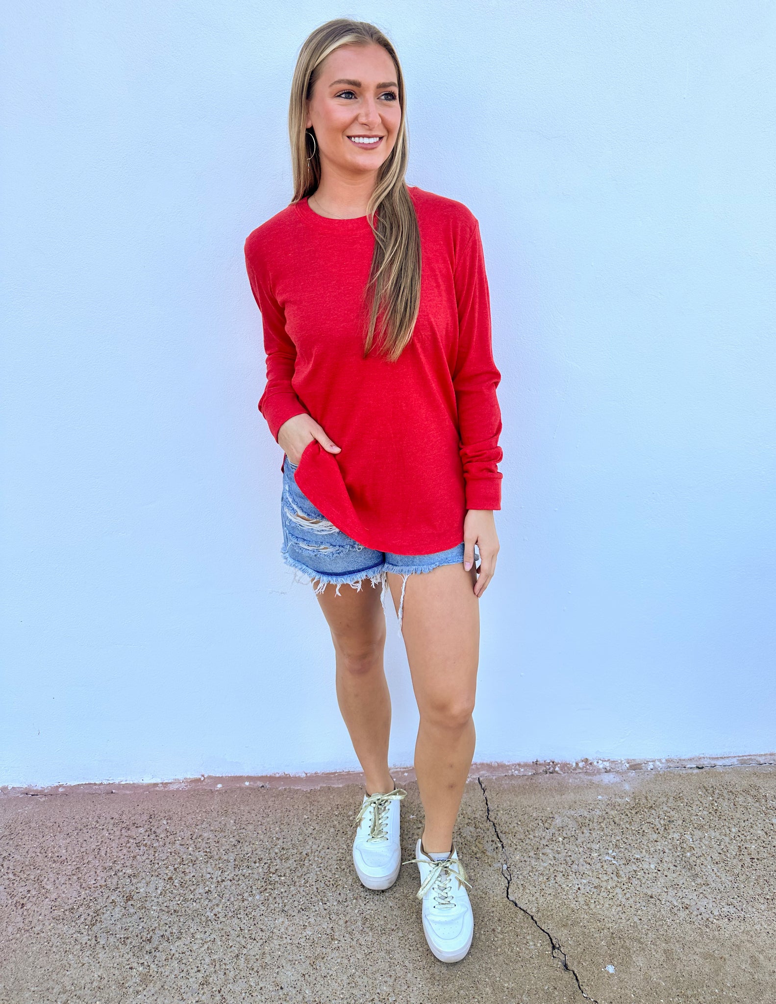 The Norman Long Sleeve Mélange Tee is a dream come true for the fashion-conscious. The 52% cotton and 48% polyester blend is ultra-soft and comfortable, while the high-low curved hemline adds an elegant touch. Combining style and comfort, this fashionable tee is sure to upgrade any wardrobe!