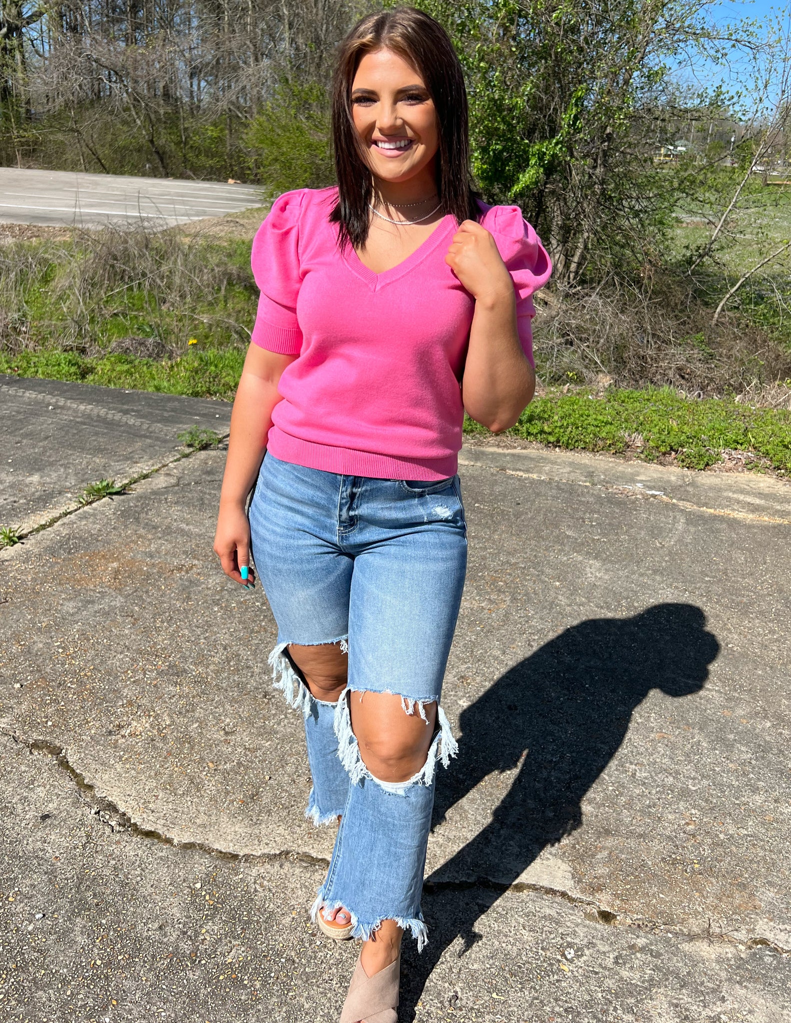 Endless Possibilities Puff Sleeve Top Fuchsia