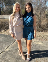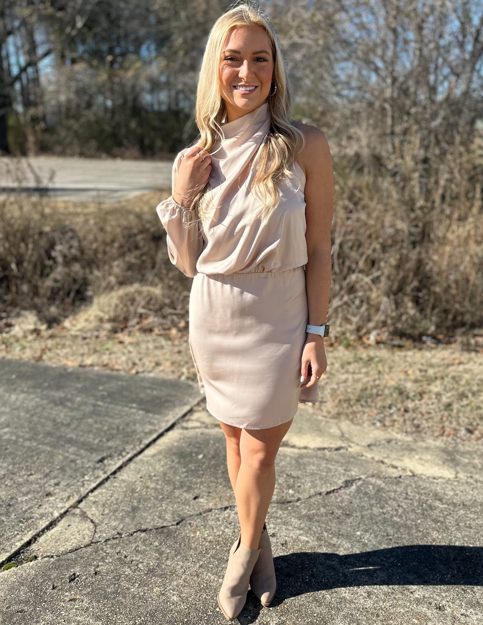 Women's Short Formal Satin Dress: Mock neck dress for women shows off your slender