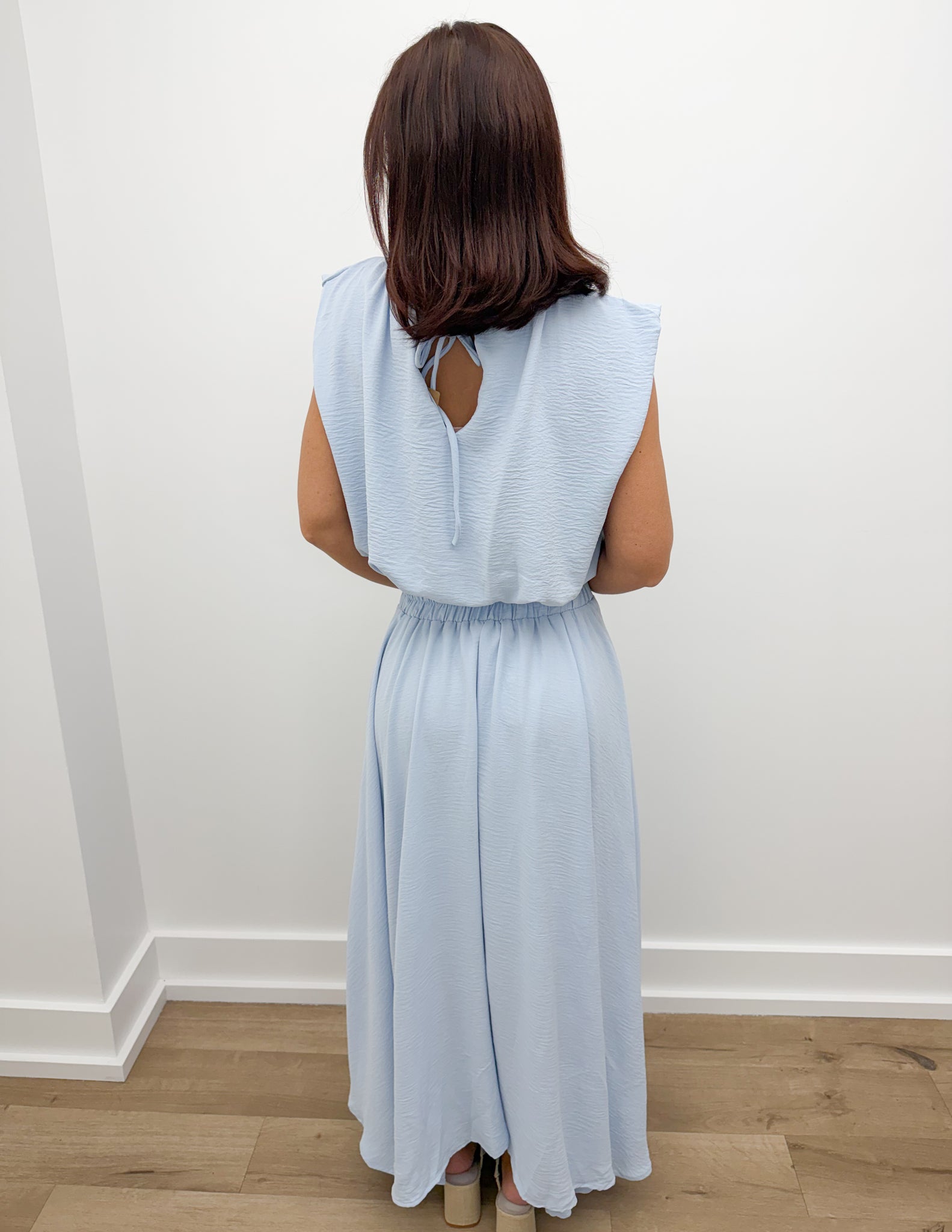 ELASTICIZED BACK-WAIST BOX PLEATED CIRCLE HEM LINED MIDI SKIRT SOLID SHELL: 100%POLYESTER LINING: 100%POLYESTER