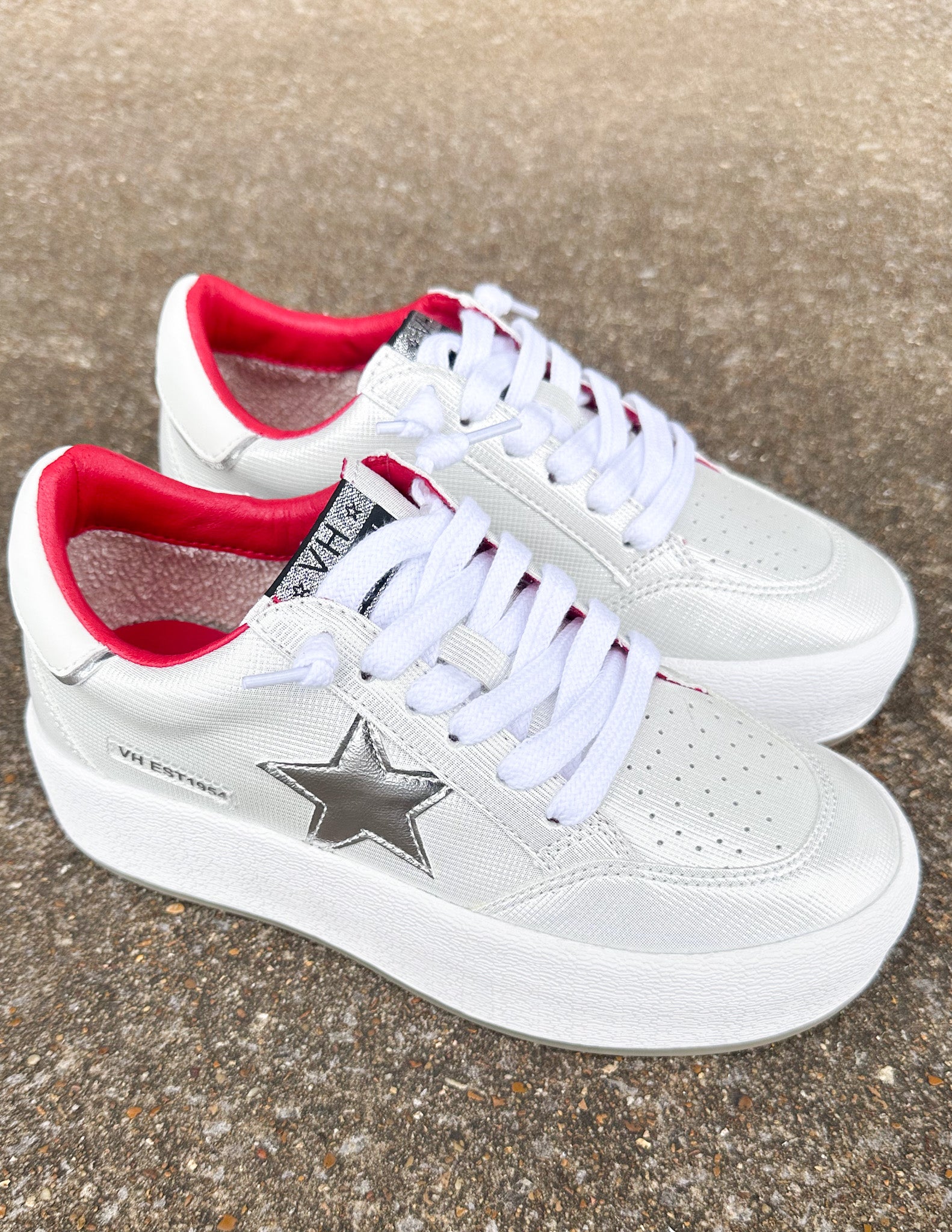 White Laced Red Collar Lining Silver Star Wedged Low Top BB