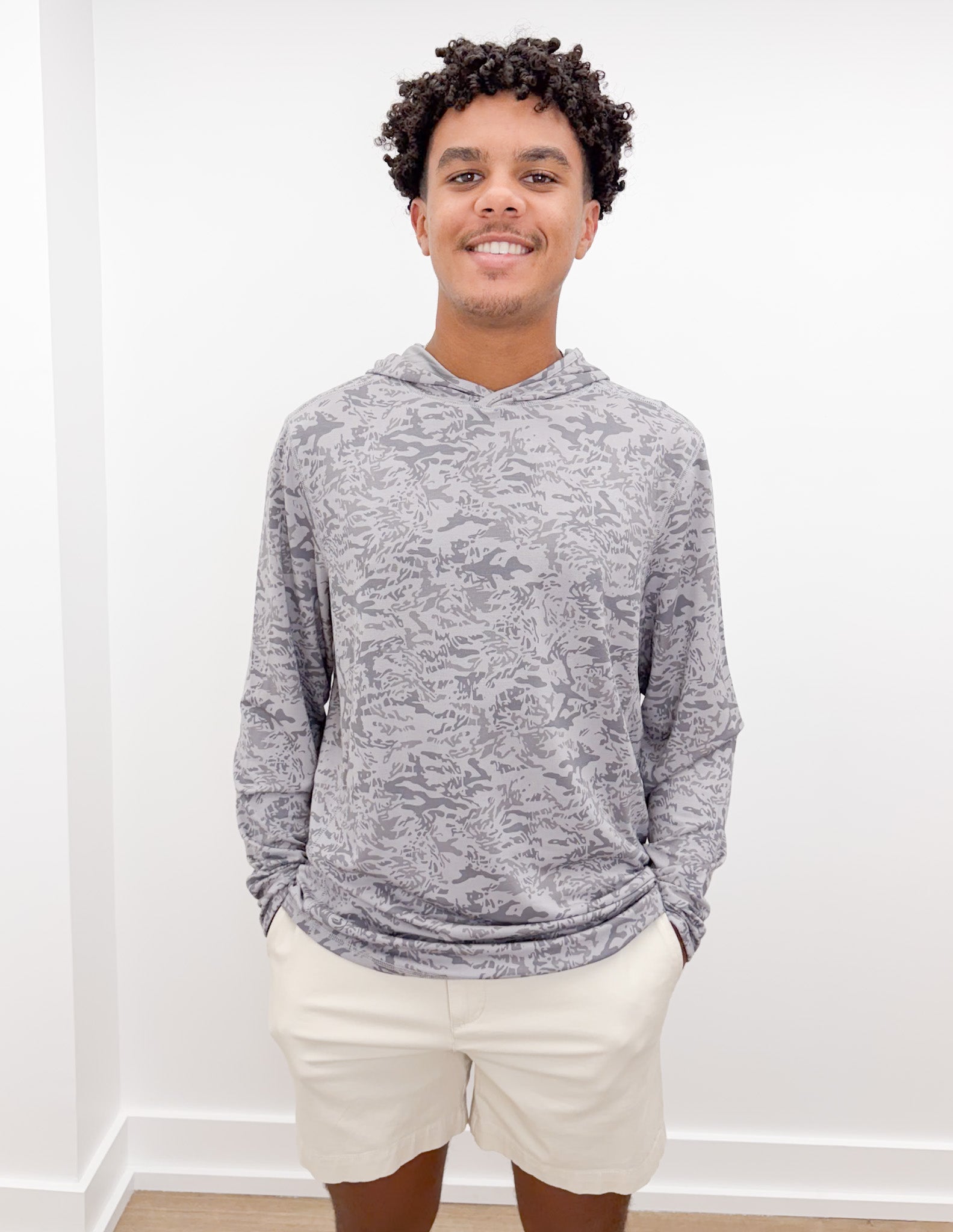 • Our outdoor inspired Birkdale MarshLUX Performance Hoodie boasts an all over custom camo pattern and a wrap around hood to protect from the wind. The built-in thumbholes keep this pullover in place, and the lightweight, moisture wicking material has an added stretch that allows for easy mobility.