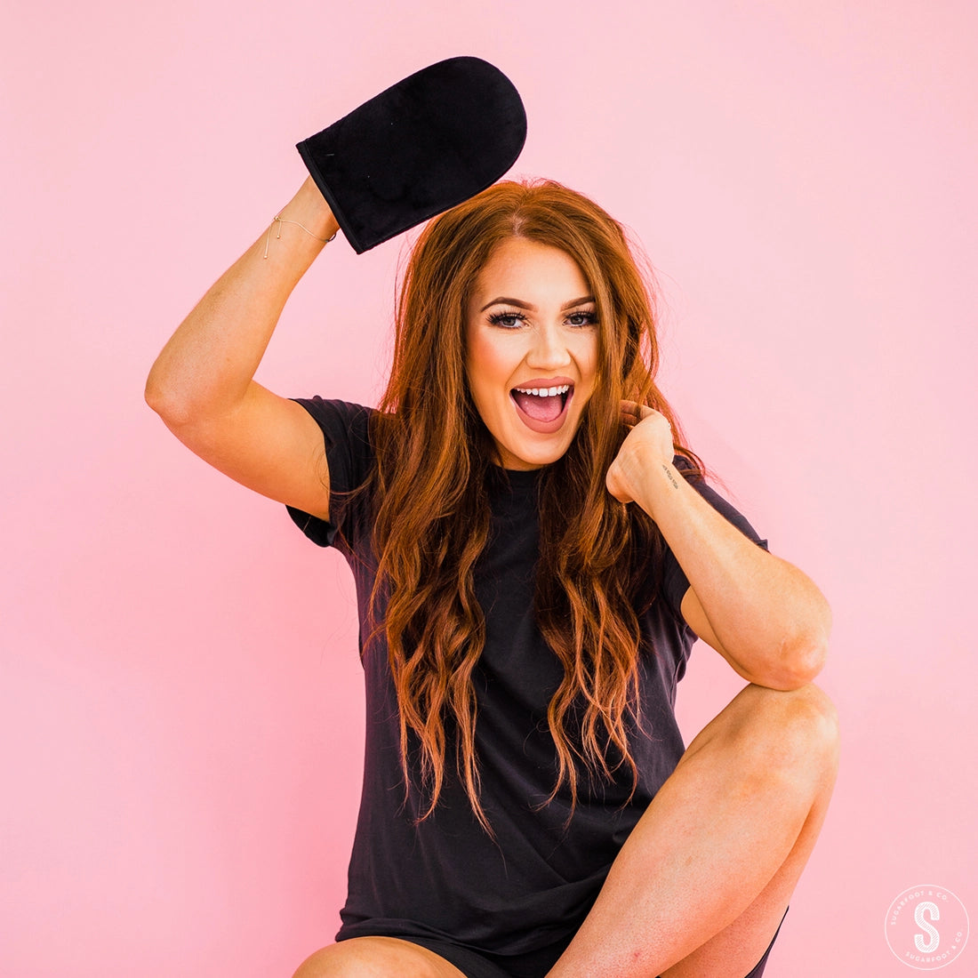 Our luxurious velvety soft double-sided mitt is reusable and washable. Use with our Sugar Glow tanning mousse using long, sweeping strokes for the perfect streak-free tan. Includes (1) one black mitt. This mitt is just a little thicker and more luxe than our pink mitt.
