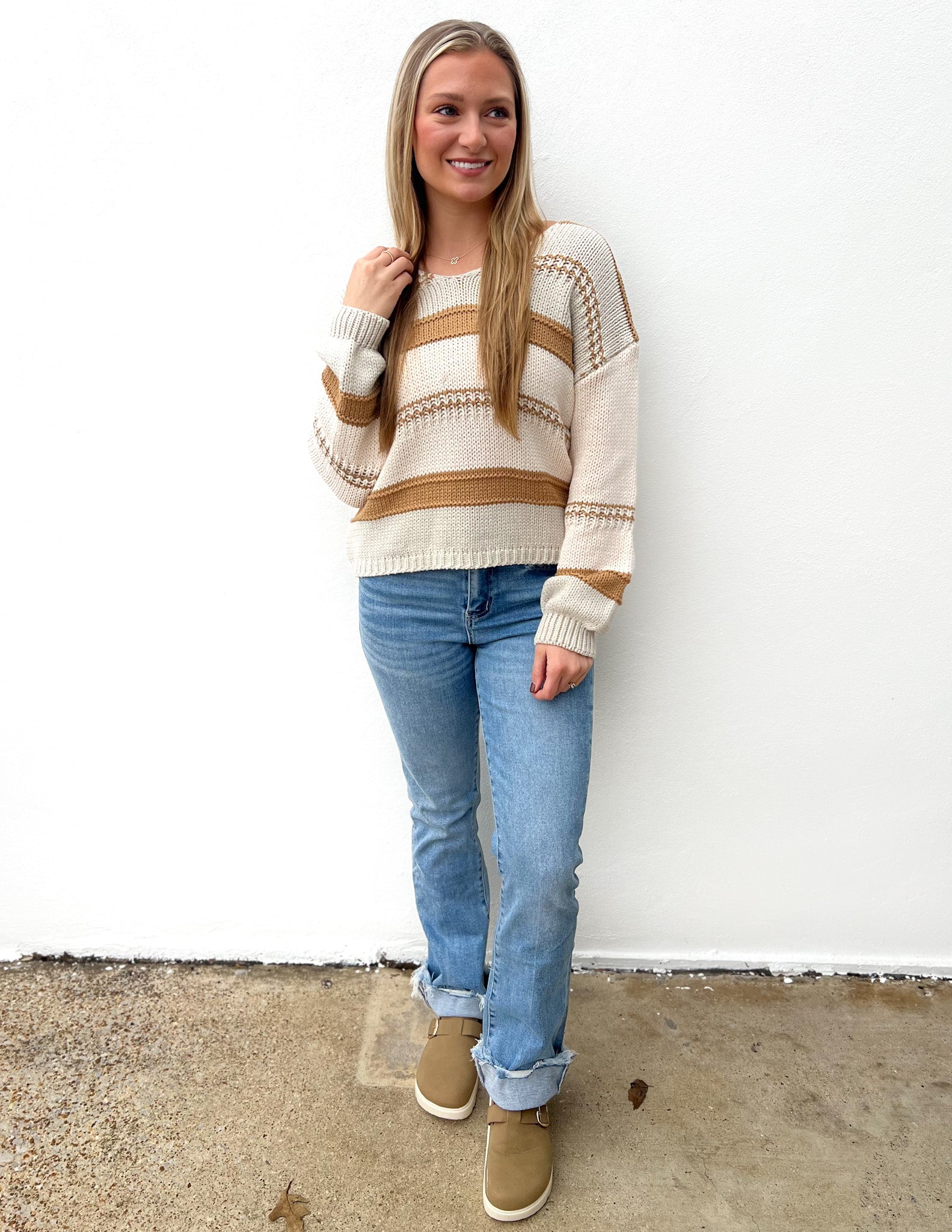 MULTI COLOR STRIPE SCOOP NECK SWEATER
